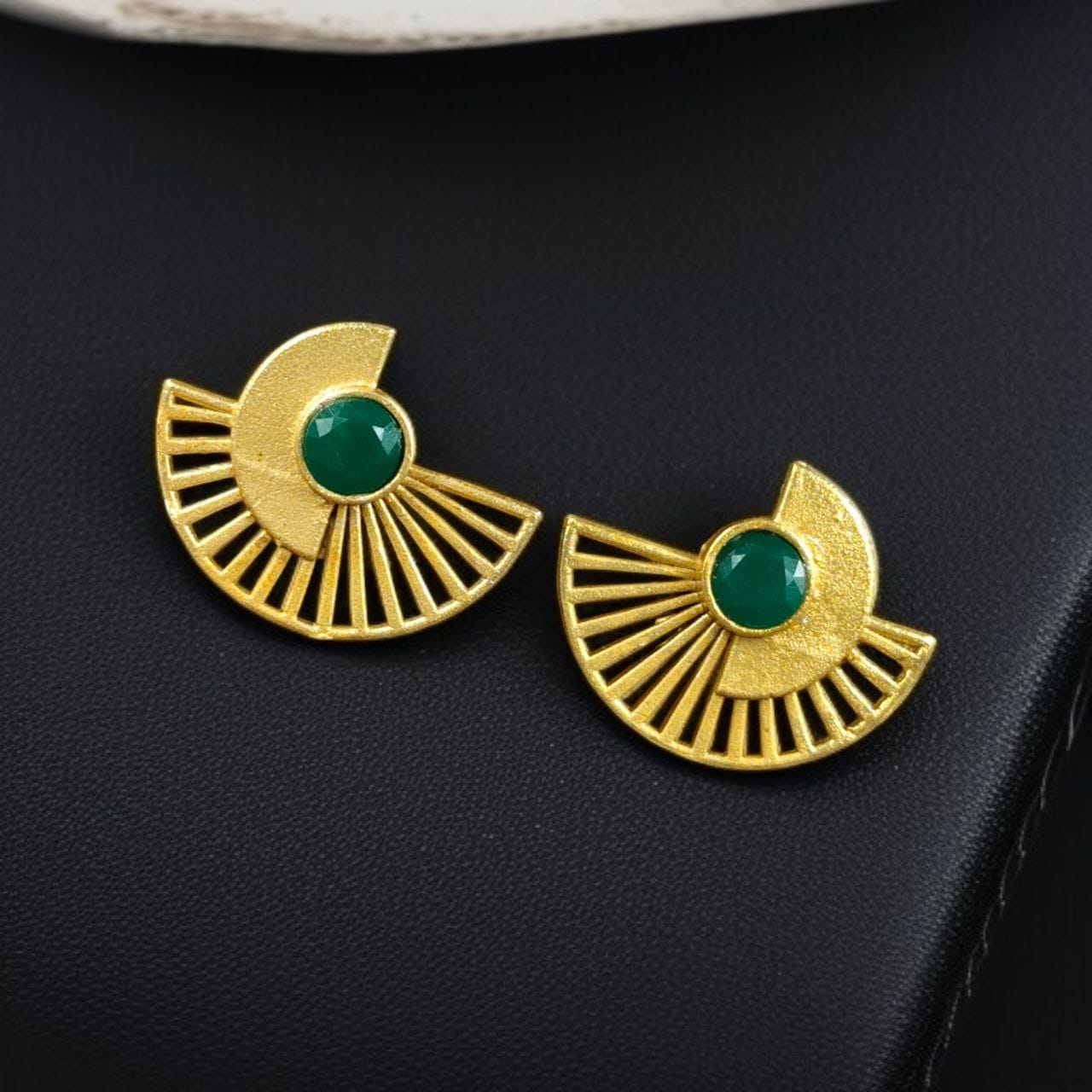 Add a touch of modern elegance to your jewelry collection with these exquisite Modern Half-Circle Stone Earrings.?A true blend of luxury, style, and comfort, these Circle Stone Earrings are designed to make you shine effortlessly.