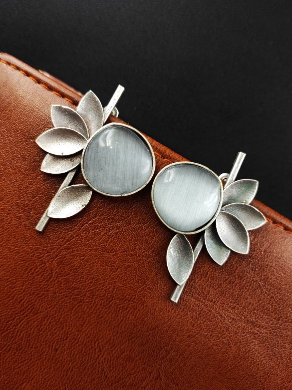 Introducing our exquisite Monalisa Stone Half Flower Stud Earrings in a captivating Silver Replica Polish finish. Inspired by the timeless elegance of the iconic Monalisa, these earrings offer a fusion of classical charm and contemporary design. Crafted with meticulous attention to detail, they are destined to elevate your style with their delicate beauty.