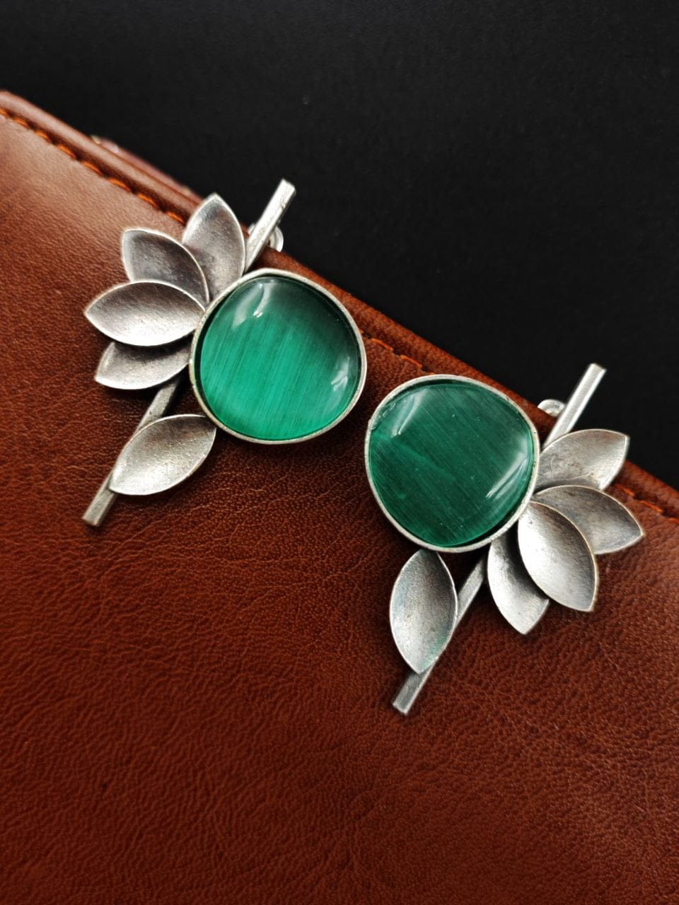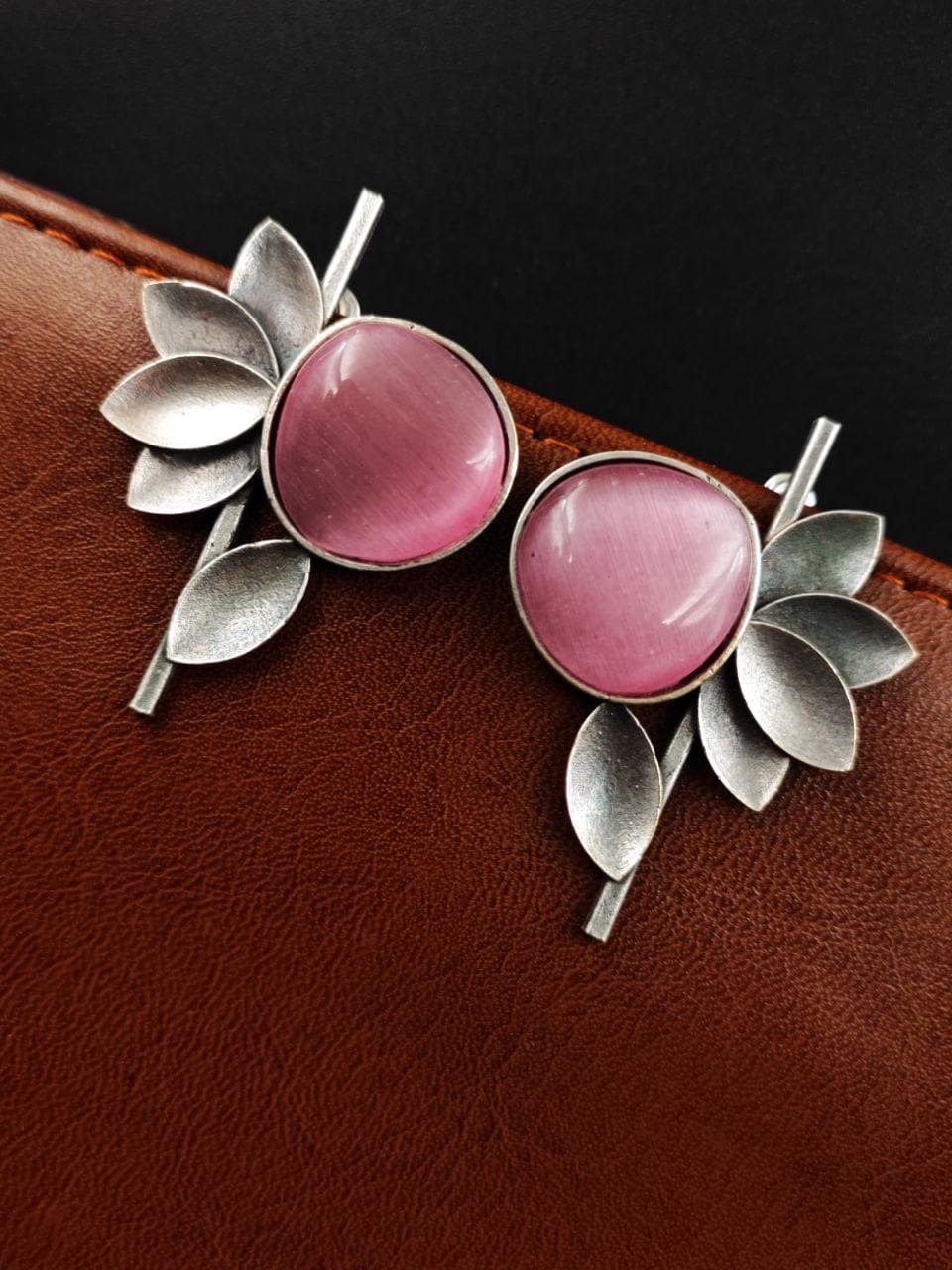 The intricate half flower design adds a graceful flourish to these Half Flower Stud Earrings , evoking the gentle beauty of blossoms in bloom. Delicately crafted petals curl around the Monalisa stone, creating a harmonious fusion of nature-inspired motifs and artistic craftsmanship. The meticulous detailing brings a sense of depth and dimension to the design, capturing the essence of botanical splendor with every glance.
