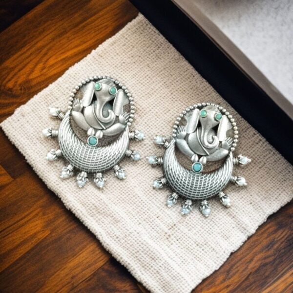 Embrace divine elegance with our Oxidised Ganesha Stud Earrings, a perfect blend of spirituality and contemporary fashion. Designed for the modern woman who appreciates traditional aesthetics, these Silver Replica Chandbali Ganesha Stud Earrings beautifully capture the essence of Indian heritage while maintaining a trendy appeal.