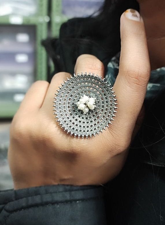 Introducing our Oxidised Ghunghru Silver Look alike Rings, meticulously crafted by D9 Creation. These Silver Replica Rings are designed to add a touch of sophistication and elegance to your jewelry collection, making a statement with their unique and captivating Ring designs.
