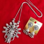 Embrace the divine essence of Goddess Durga with our Oxidized Goddess Durga Chain Necklace with Jhumka Earrings. Experience the fusion of spirituality and elegance, encapsulated in a timeless masterpiece of jewelry craftsmanship. Let your adornments reflect not just your style, but also your reverence for the divine feminine.