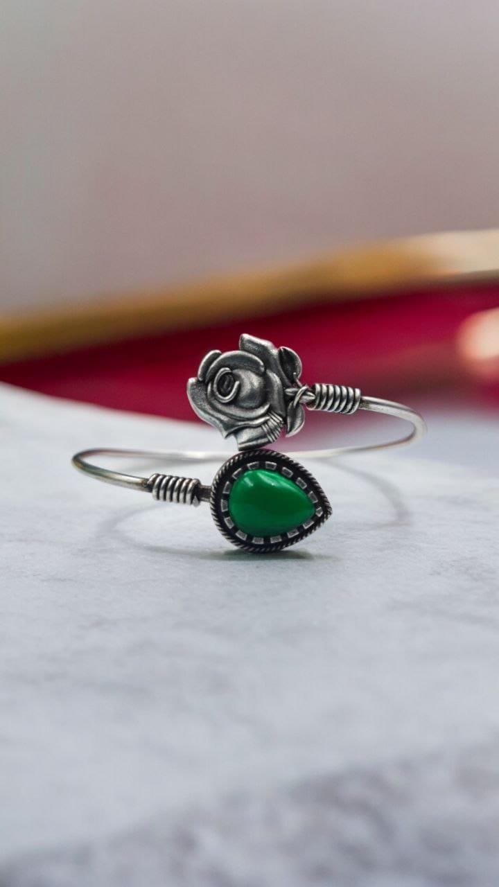 Introducing our collection of Oxidised Monalisa Stone Work Bracelets and Bangles, handcrafted with precision and care by D9creation. Each piece is a work of art, showcasing a blend of traditional Silver Look Like Flower craftsmanship and contemporary design.