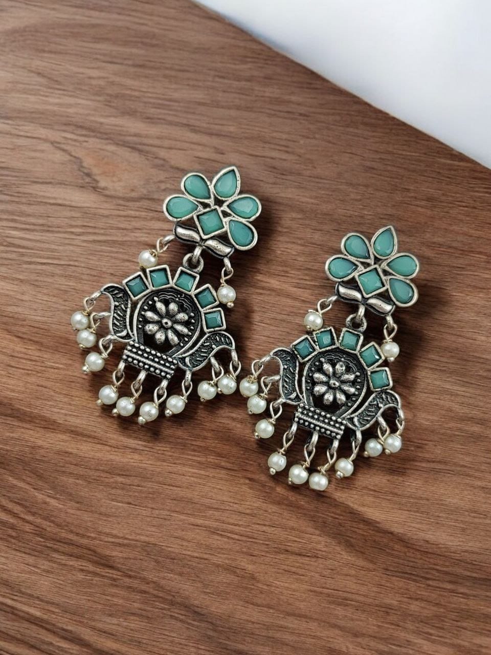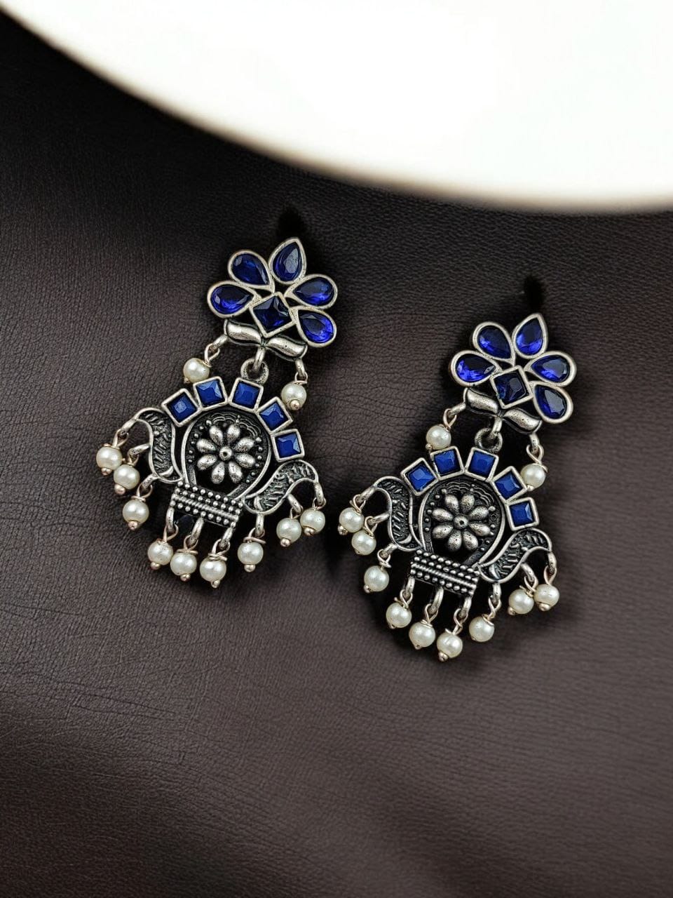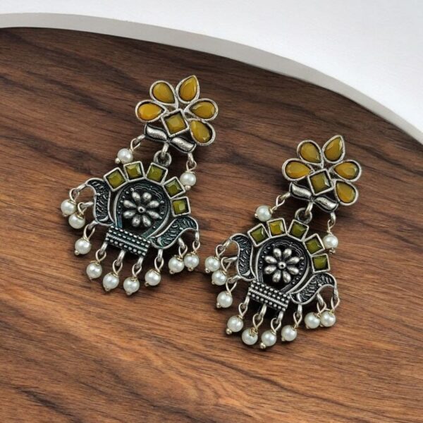 These Silver Look-Alike Earrings feature a premium oxidized finish that mimics the beauty of genuine silver, giving them a timeless aesthetic at a fraction of the cost. The intricate design of the Bali-style danglers showcases exquisite craftsmanship, adorned with fine detailing that enhances their cultural charm. Each Silver Replica Earrings is delicately designed to be lightweight, so you can enjoy a sophisticated look without any discomfort. This makes them perfect for all-day wear, whether you?re attending a festive celebration, a wedding, or a casual gathering.