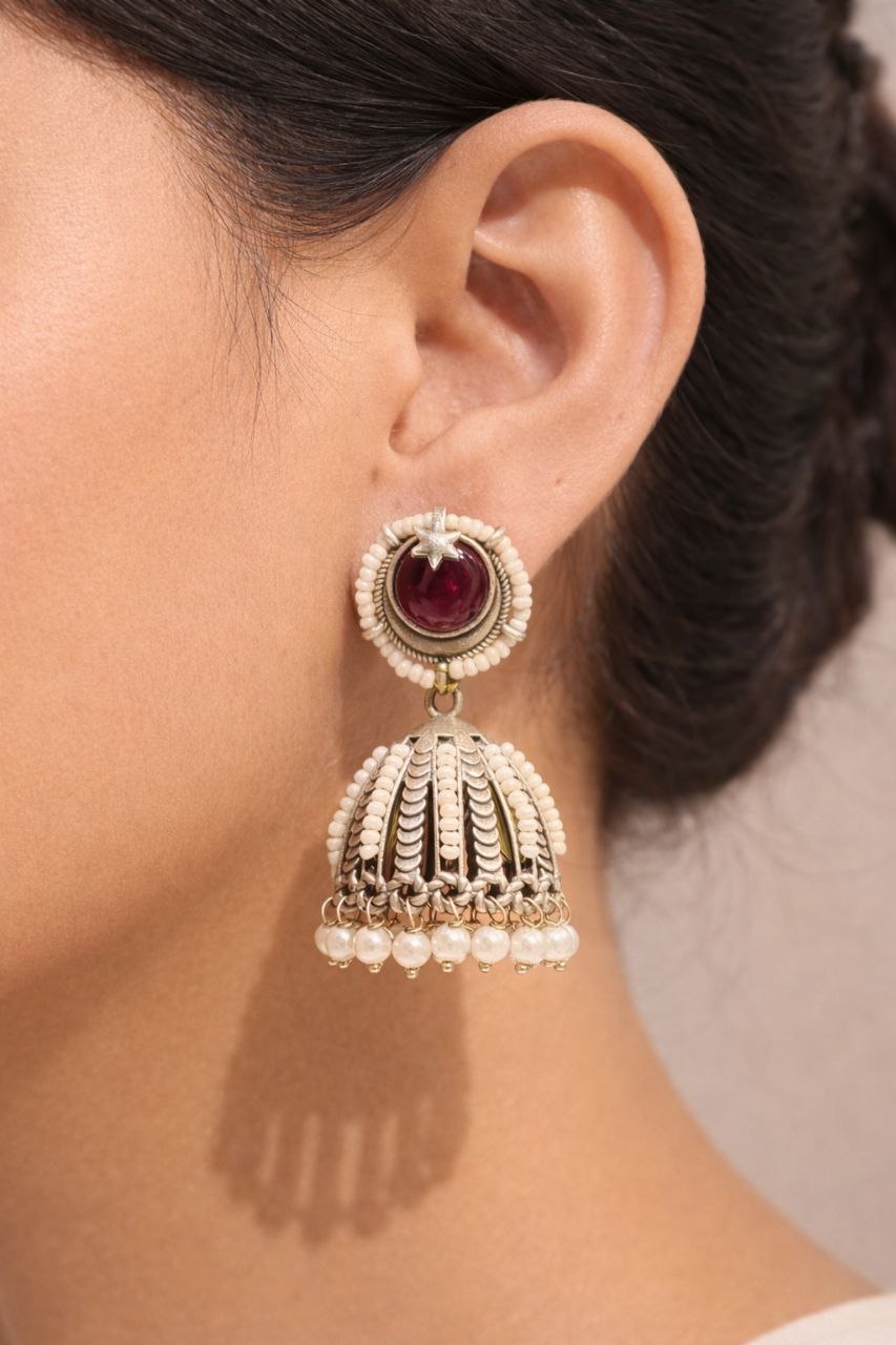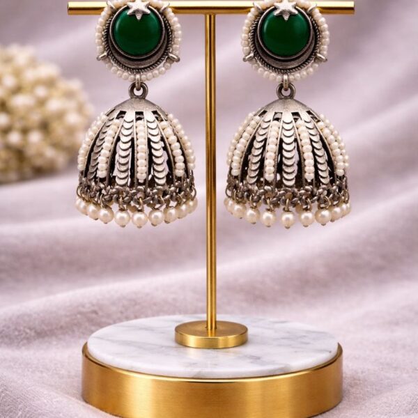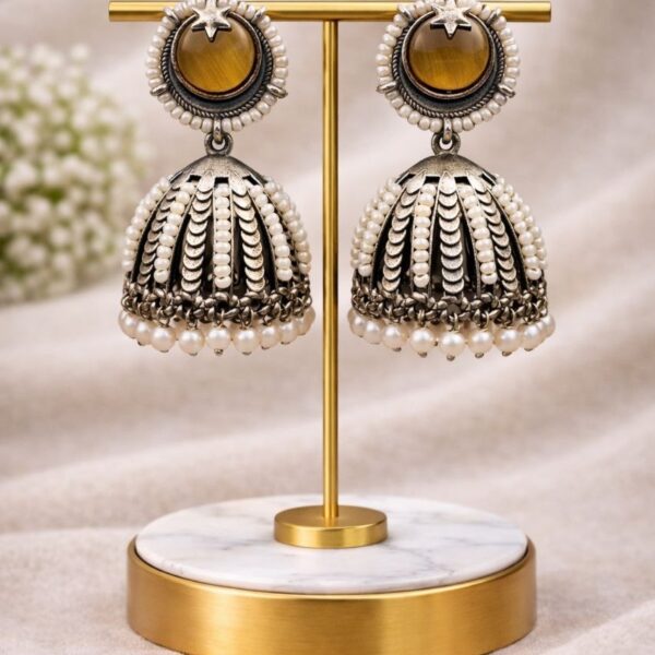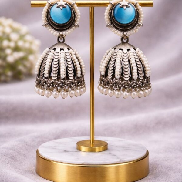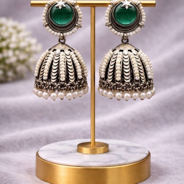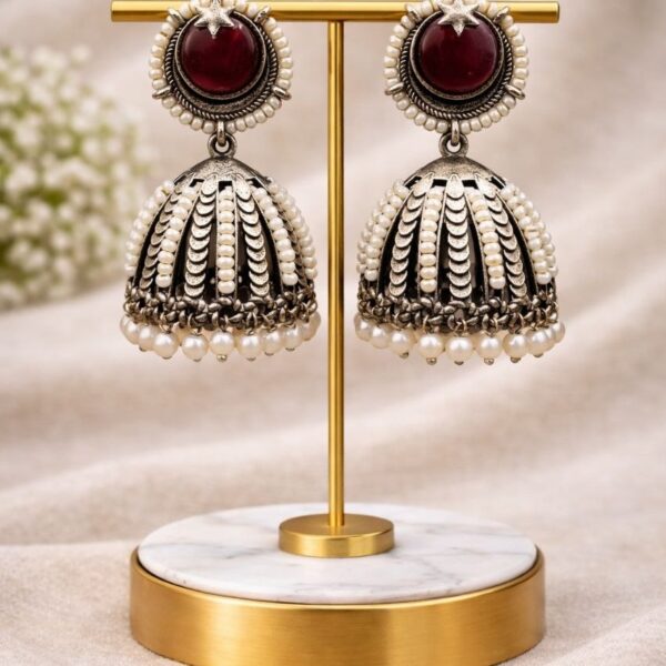 Be the first to review “Oxidized Jhumka Earring Ethnic Jewelry for Pearl Work Detailing”
