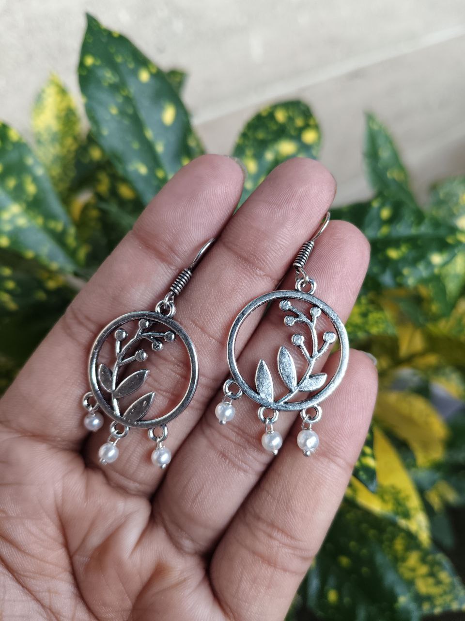 With their unique leaf and circle dangler style, they are sure to catch compliments wherever you go. Add them to your collection today and elevate your jewelry box with timeless oxidized art.