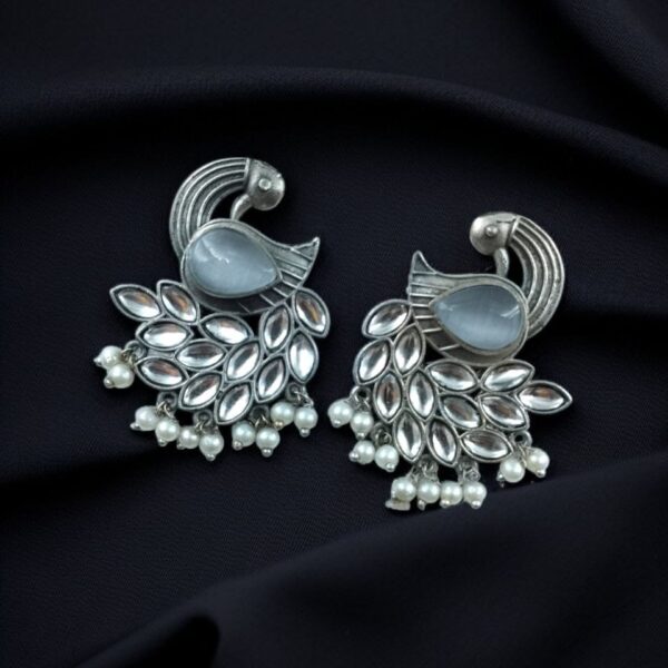 Step into the world of timeless tradition and elegant artistry with these Oxidized Peacock Earrings with Monalisa Stone and Pearl. A must-have addition to every jewelry collection that speaks of grace, culture, and individuality.