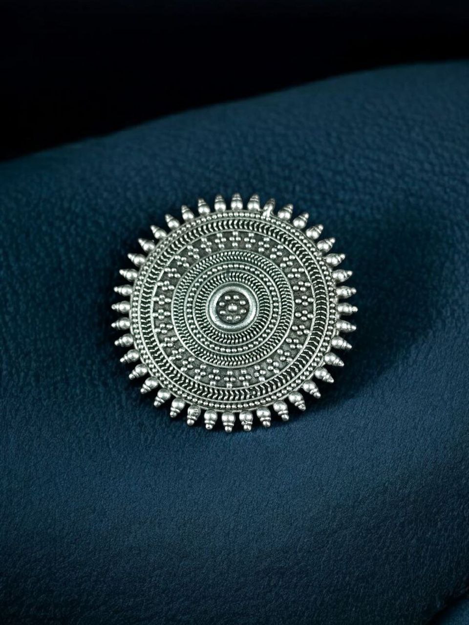Its timeless round motif makes it suitable for girls and women of all ages. The oxidized texture gives it a rustic and ethnic feel, making it perfect for festive occasions, cultural events, and even small family gatherings, while still remaining subtle enough for daily use.
