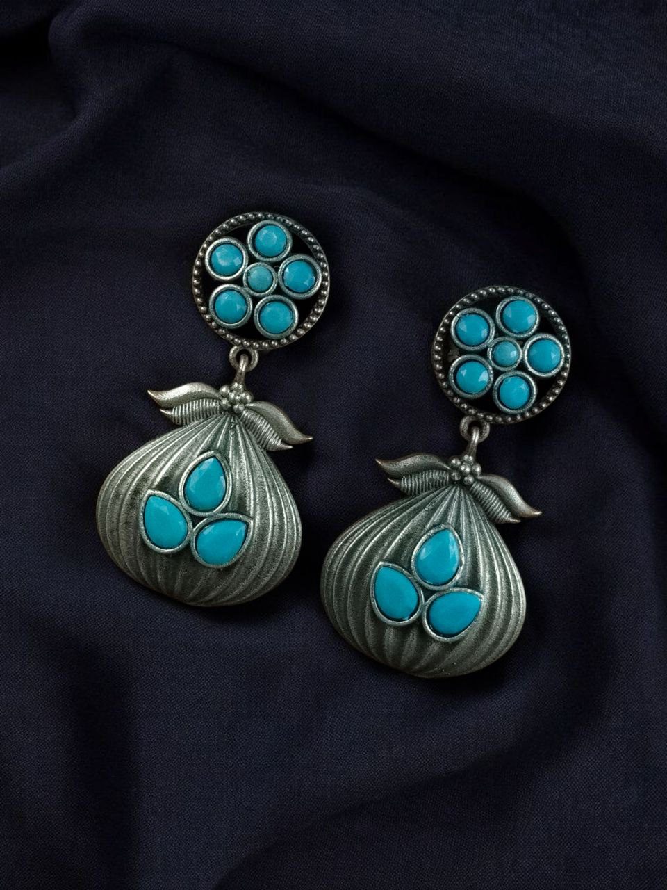 Crafted with precision, these Dangler Earrings feature a silver plated oxidized finish that gives them an antique, rustic appeal. The oxidized effect adds depth and texture to the metal, enhancing the intricacy of the unique design. Whether you love boho-chic fashion or lean toward Indo-western fusion looks, these dangler earrings will complement your style effortlessly.
