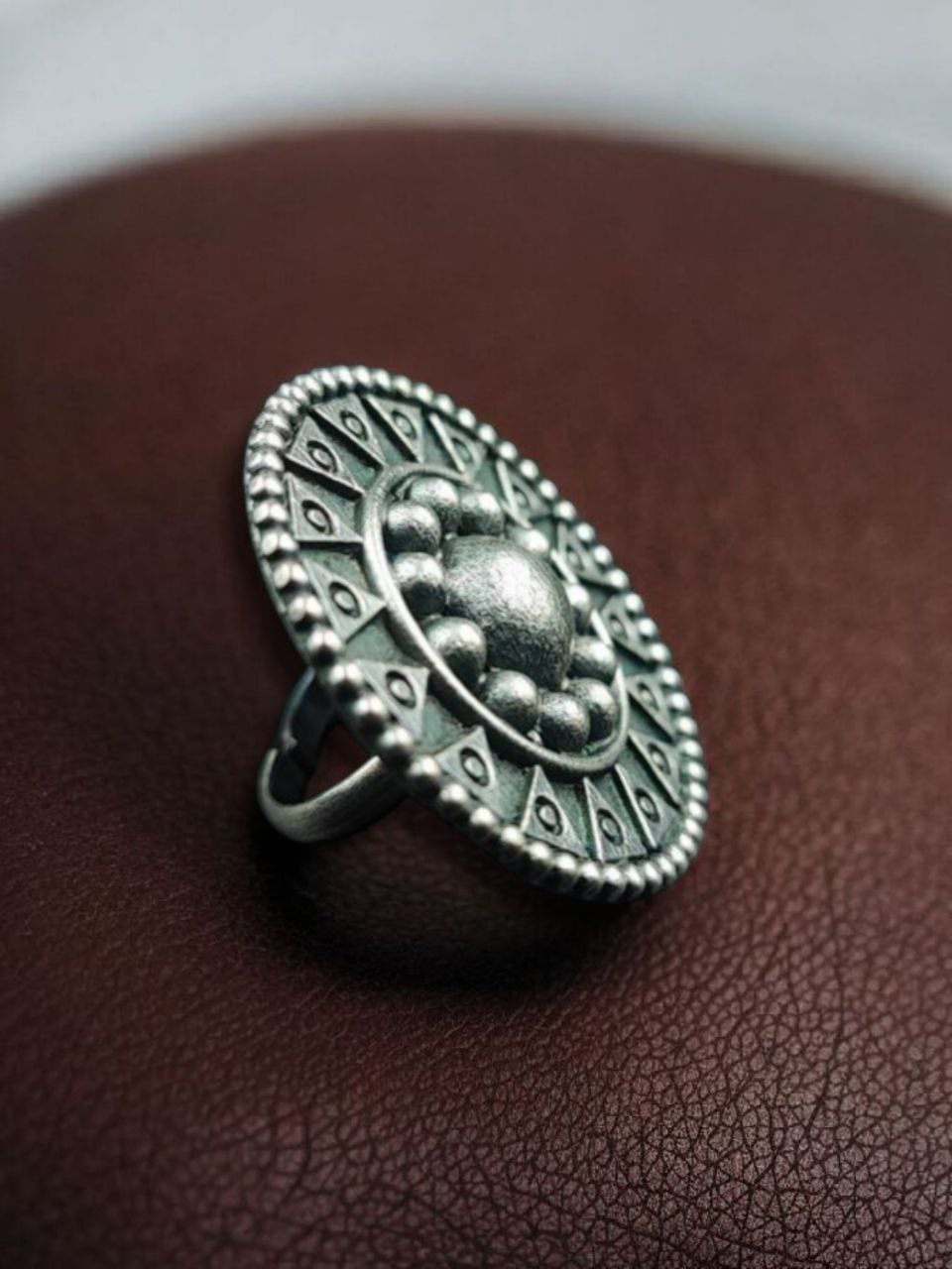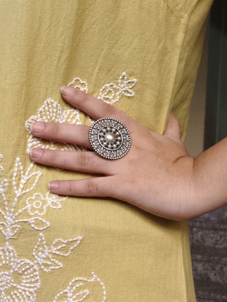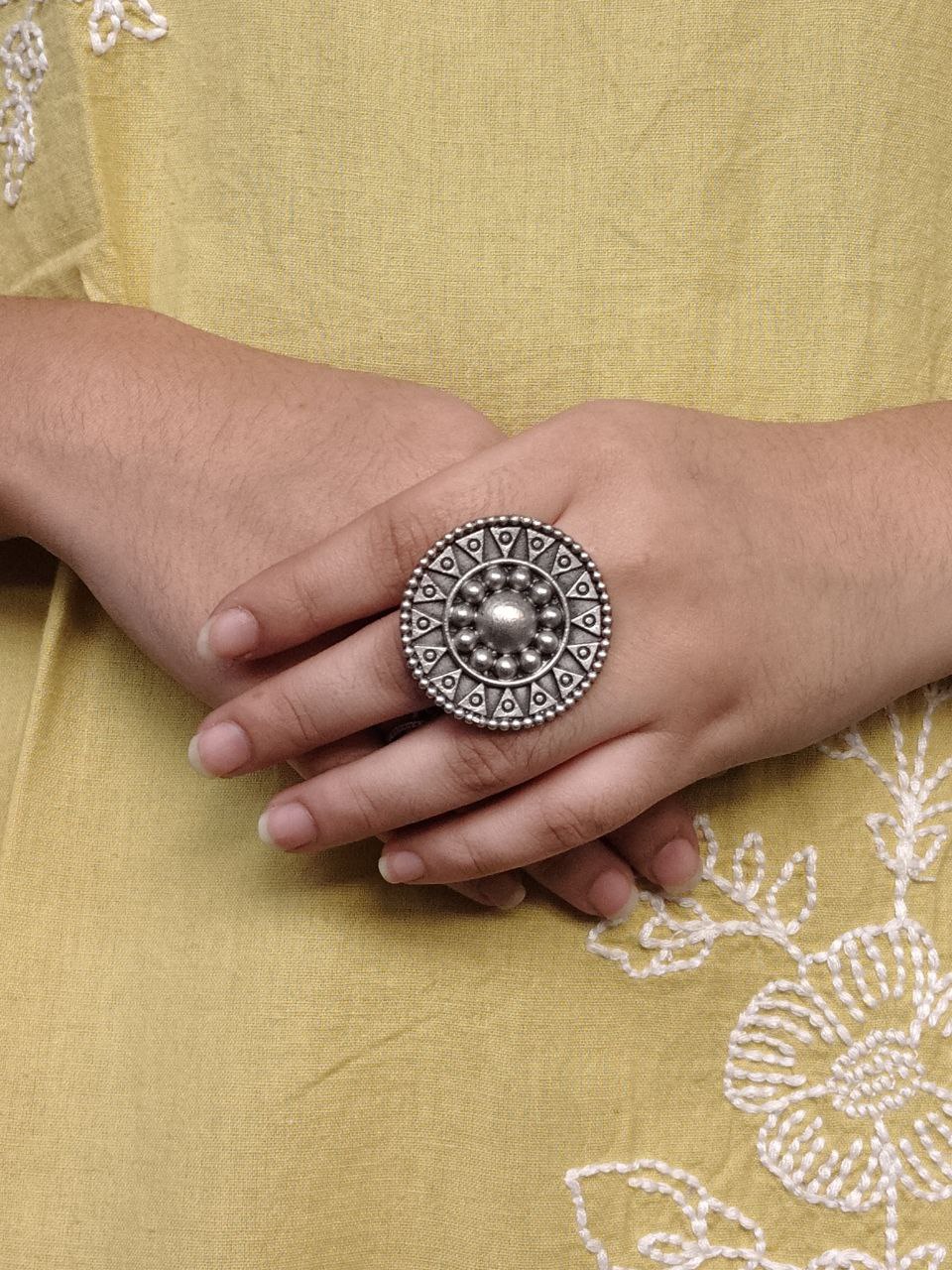 Each piece is carefully handcrafted by skilled artisans known for their expertise in oxidized jewelry. The intricate patterns and fine carvings reflect traditional Indian craftsmanship, making this Unique Design Ring not just an accessory but a piece of art. It pairs beautifully with sarees, lehengas, kurtis, western outfits, and fusion wear?its versatility is truly unmatched.