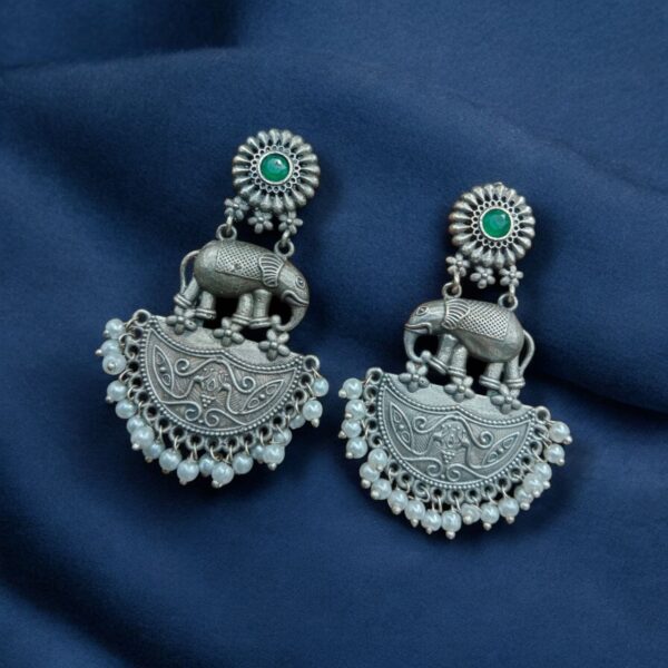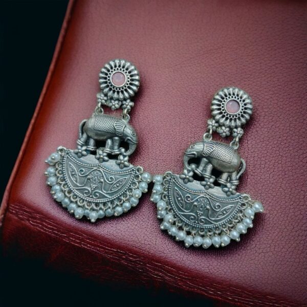These elephant-inspired earrings are handcrafted with precision to showcase fine detailing, giving them an elegant and artistic look. The oxidized silver finish enhances the antique aesthetic, making them a timeless addition to any jewelry collection. Whether you love boho fashion, traditional outfits, or casual wear, these earrings blend seamlessly with any style.