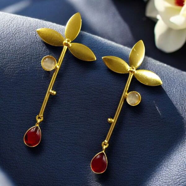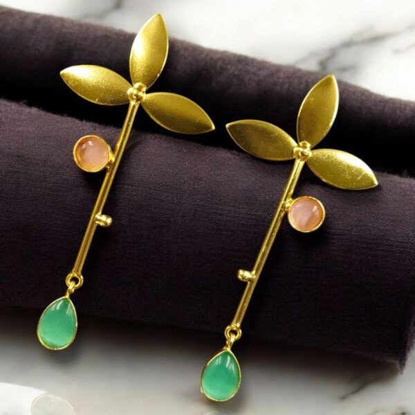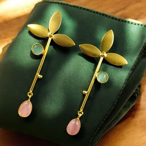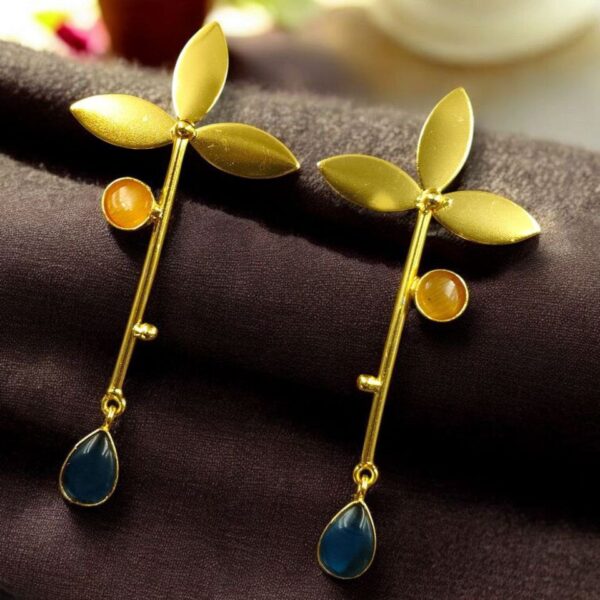 In summary, the Premium Gold-Plated Brass Earrings with Monalisa Stone offer the perfect blend of modern design, luxurious materials, and everyday wearability. Their long stud style creates a striking silhouette, while the gold-plated brass and radiant Monalisa stone ensure a quality finish that won?t go unnoticed.