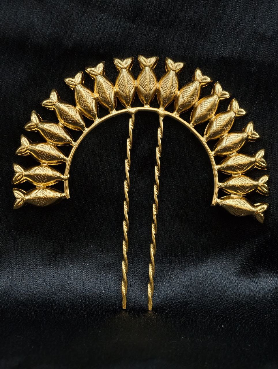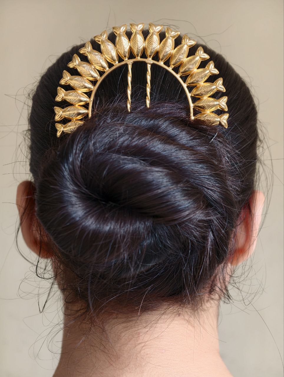 Versatile in styling, this gold plated fish design juda pin suits women of all age groups. You can style it with a classic low bun for a traditional look or pair it with a modern bun or braided hairstyle for a fusion appearance. Its eye-catching design allows it to be worn as a statement piece or combined with other hair accessories for a layered, festive style.