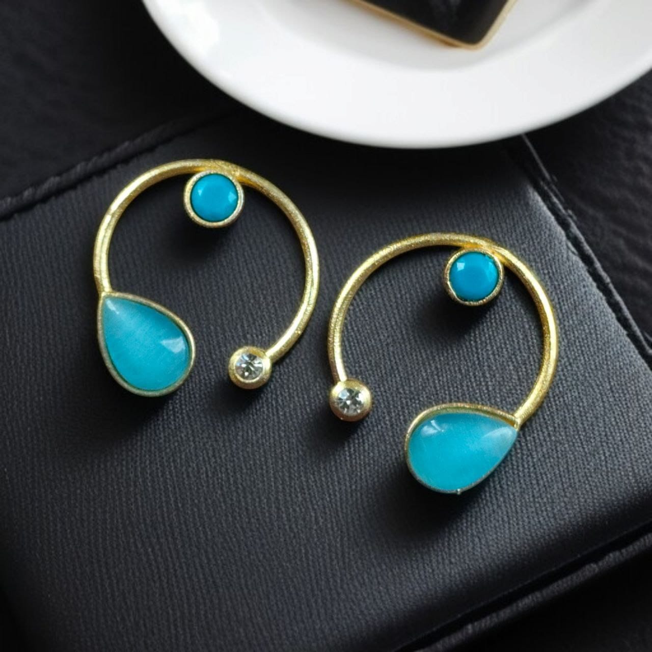 Upgrade your jewelry collection with these stunning golden stone earrings and embrace elegance like never before!