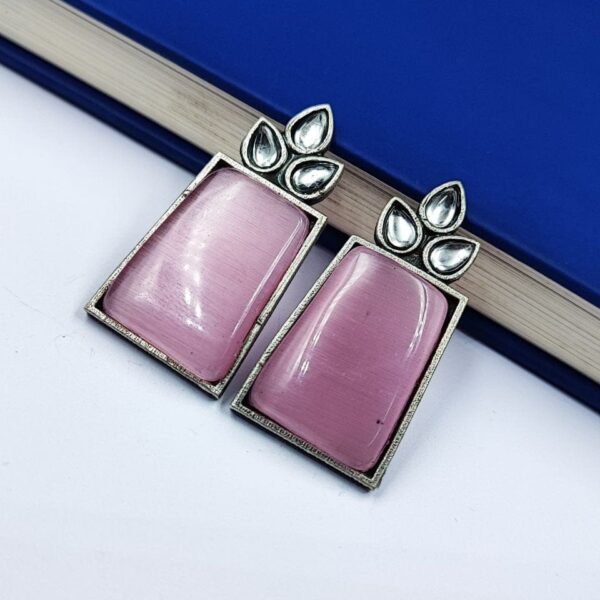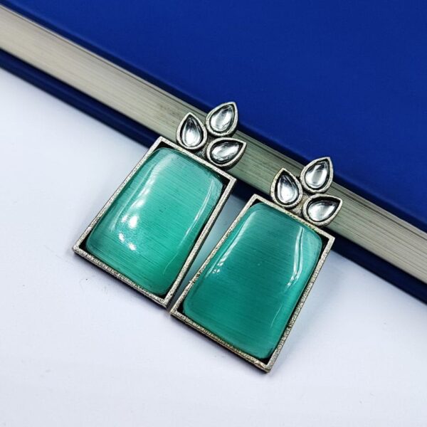 Design: The earrings feature a replica of a Stone Stud, a majestic known for its vibrant feathers and graceful demeanor. The Drop Shape Stone design is intricately carved and showcases the Monalisa Glass Stone Earrings beautiful plumage, including its elegant feathers and distinctive eye patterns.