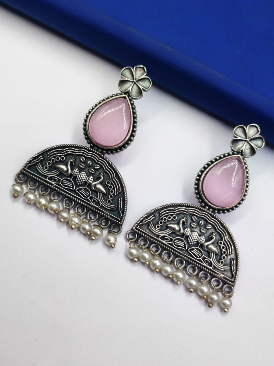 These Peacock Stud Earrings are a perfect choice for those who appreciate intricate designs, nature-inspired motifs, and the timeless beauty of pearls. With their combination of silver craftsmanship, Bird-inspired design, and delicate Stone accents, these earrings make a stunning addition to any jewelry collection.