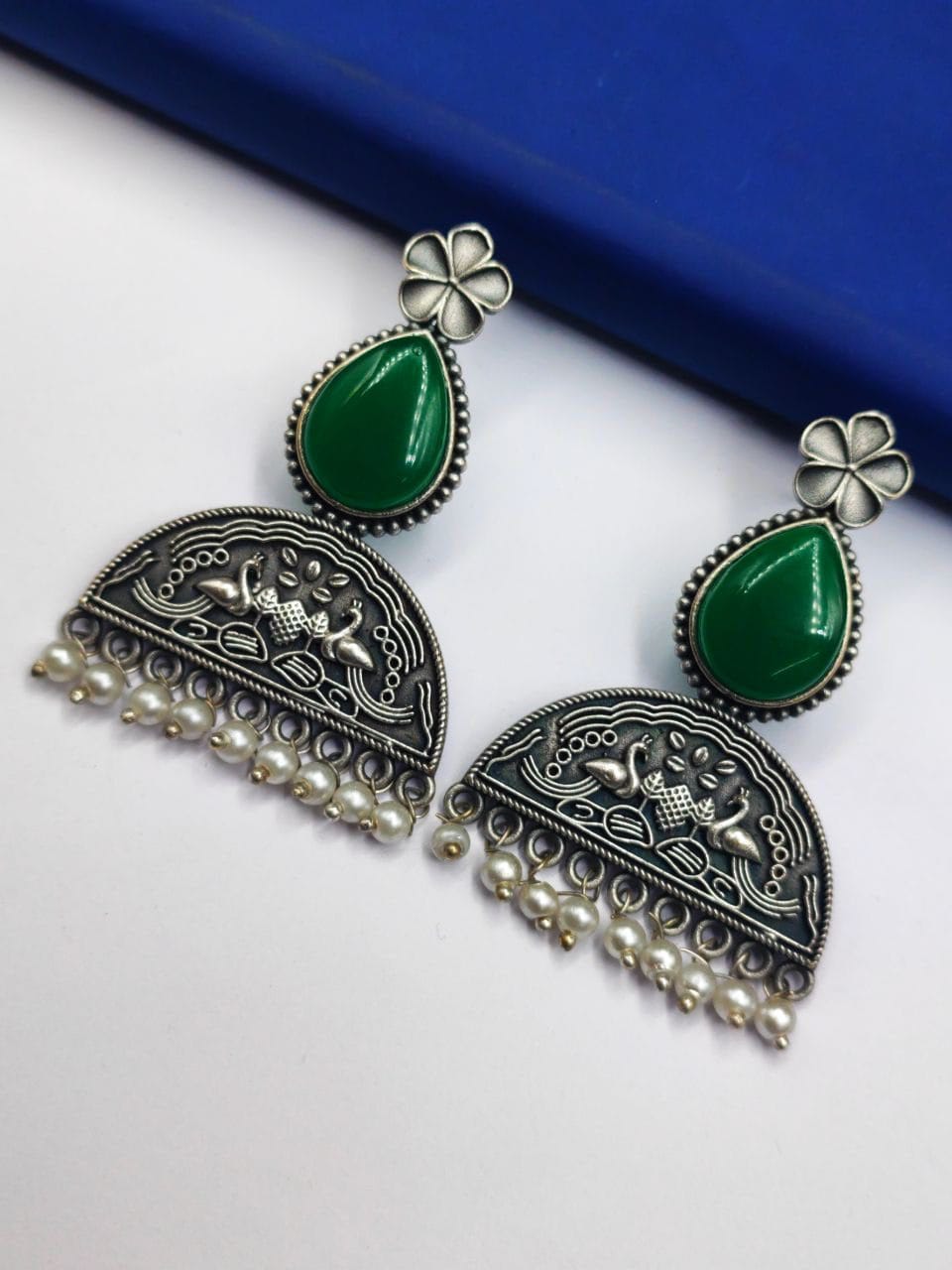 Versatile and Eye-Catching: The Silver Replica Peacock Stud Earrings with Stone Work are versatile accessories that can complement a wide range of outfits and occasions. Whether you’re attending a formal event, a wedding, or simply want to add a touch of sophistication to your everyday look, these earrings are sure to catch your attention and garner compliments.