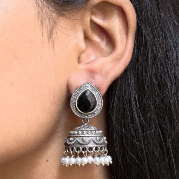 Made from high-quality brass with a premium silver-tone finish, this Silver Look Like Jhumka offers the luxurious appeal of real silver without the heavy weight. The finely carved detailing and smooth polish add a sophisticated shine that complements sarees, lehengas, salwar suits, and even fusion outfits. Whether you are dressing up for a special event or simply elevating your daily ethnic look, these jhumkas add a refined finishing touch.