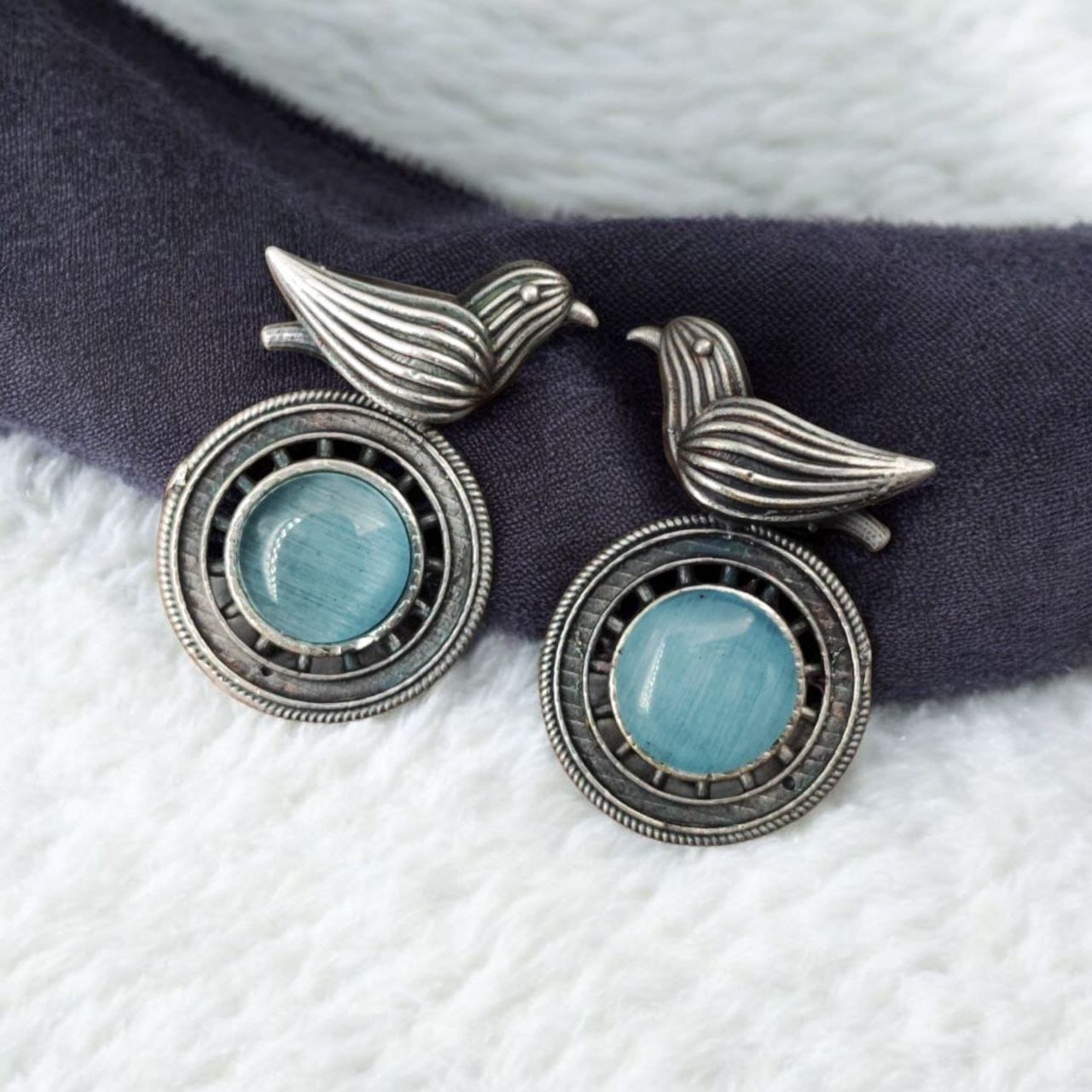 Perfect as a thoughtful gift for nature lovers, bird enthusiasts, or anyone who appreciates finely crafted jewelry, these Silver Look-alike Oxidized Bird Stud Earrings with Monalisa Stone are a timeless addition to any jewelry collection. Bird Stud Earring Their distinctive design, high-quality craftsmanship, and elegant stone work make them a true standout piece.