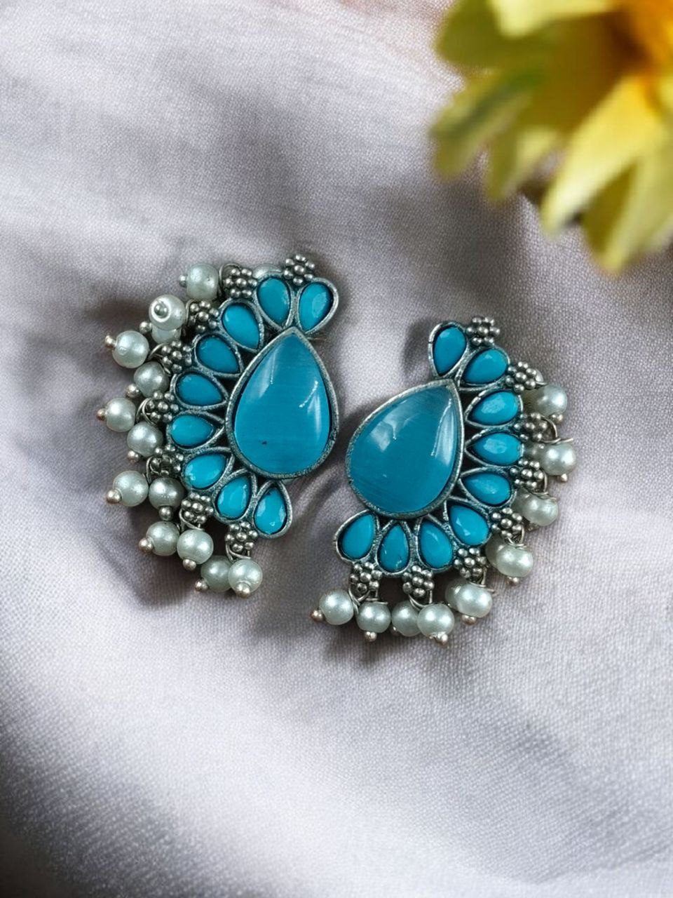 Add these Silver Plated Western Style Earrings with antique oxidized stone & pearl detailing to your accessory box and experience the perfect balance of tradition and modern elegance.