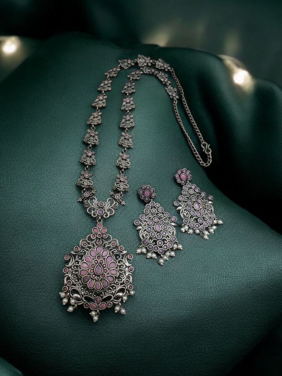 This traditional oxidized jewelry set is a thoughtful gift for loved ones on special occasions like weddings, anniversaries, or festivals. Its timeless appeal ensures it will be cherished and treasured for years to come.