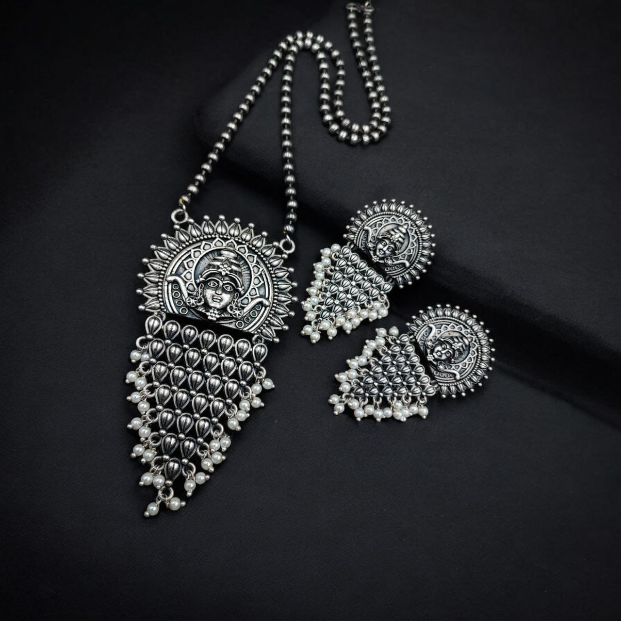 Be the first to review “Silver Replica Lord Durga Pendant Set | Unique Navratri Special Necklace”