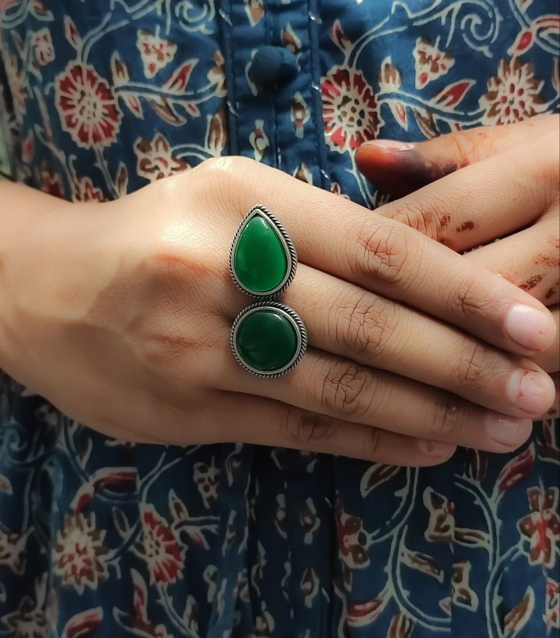 Make a bold statement with our Oxidized Monalisa Stone Silver Replica Ring . Whether you’re dressing up for a special occasion or adding a touch of glamour to your everyday look, this ring is sure to turn heads and garner compliments wherever you go. Pair it with a little black dress for a night out on the town, or wear it with your favorite jeans and t-shirt for a chic and casual vibe. With its striking design and undeniable presence, our Monalisa Stone Ring is the perfect accessory for any fashion-forward individual.