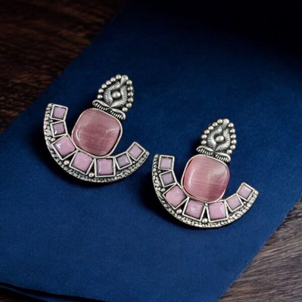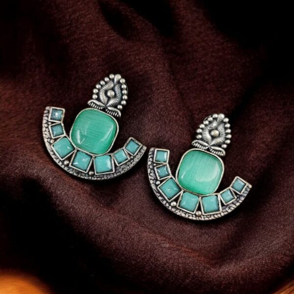 Perfect for young girls and women alike, these antique stud Silver Replica Stone Earrings can be styled with sarees, kurtis, or even western outfits for a chic, fusion look. Whether it?s a casual day out, a festive celebration, or a wedding, these earrings effortlessly enhance your outfit and make you stand out.