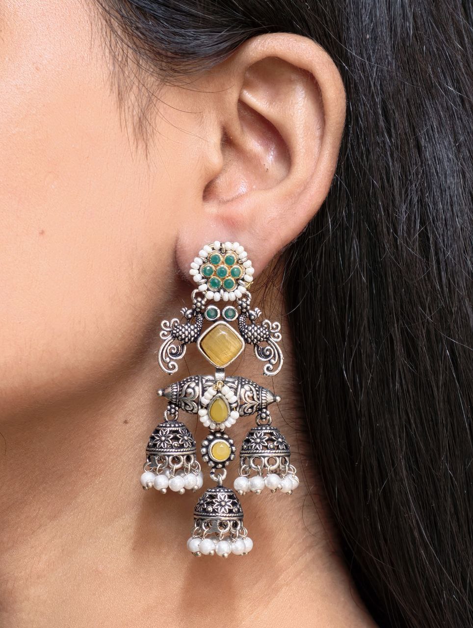Crafted with high-quality brass, these Peacock Two Tone Earrings are lightweight yet durable, ensuring comfortable wear throughout the day. The intricate peacock detailing highlights fine artistry, while the two-tone polish enhances depth and dimension. The balanced design ensures they sit beautifully on the ears without feeling heavy, making them ideal for festive occasions, family gatherings, weddings, and cultural celebrations.