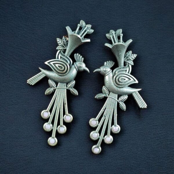 The bird-inspired design symbolizes beauty and freedom, crafted with precision to highlight intricate detailing. The silver replica finish offers the richness of antique jewelry while remaining lightweight and comfortable for daily or festive wear. The addition of sparkling stones enhances their elegance, giving these studs a perfect blend of subtlety and sophistication.