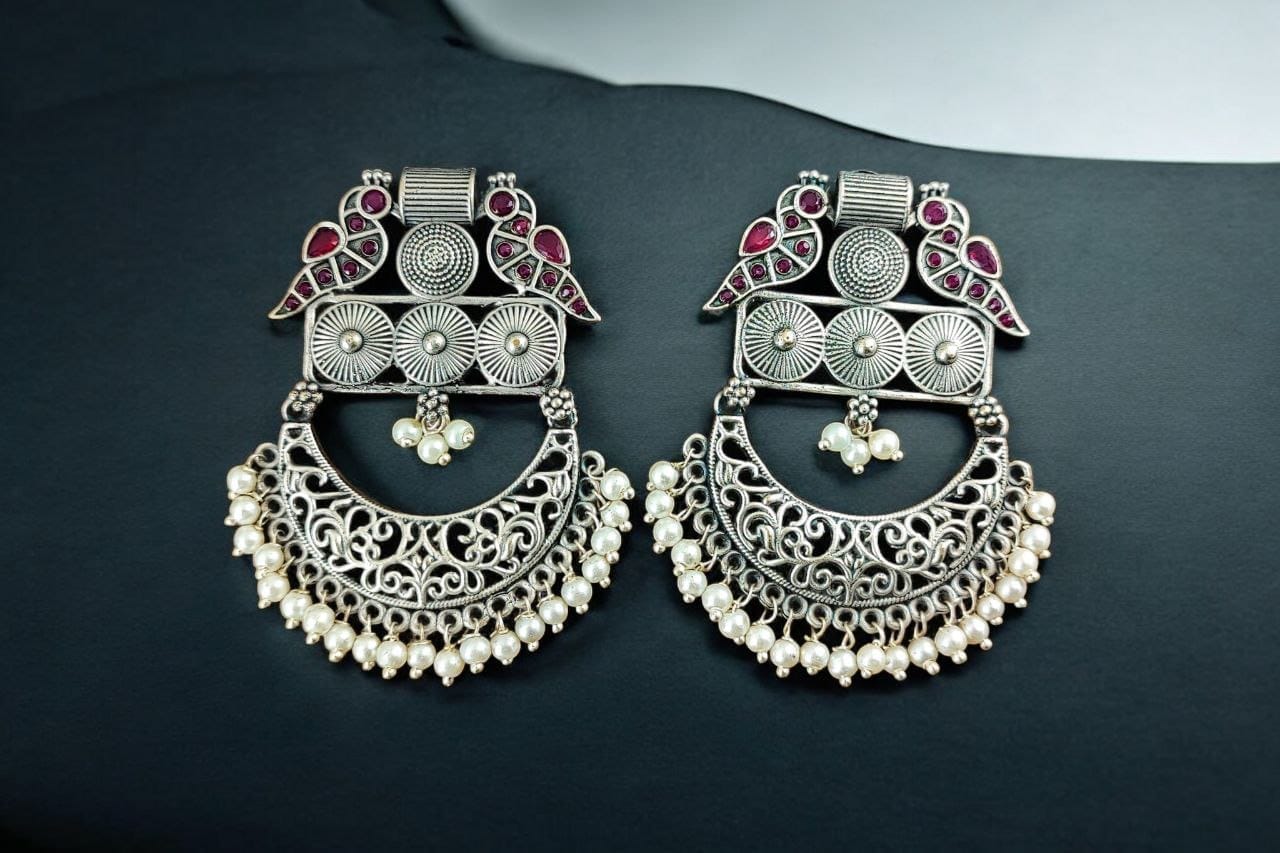 These Bird Style Earrings showcase meticulously hand-set stones that sparkle with every movement, offering a dazzling play of light and color. The vibrant stones are carefully chosen to complement the intricate bird design, enhancing the earrings’ traditional allure. The stonework adds a sophisticated touch, ideal for both daytime wear and special evening occasions. This blend of artistry and elegance ensures these danglers make a memorable impression, elevating any look with their unique design and refined sparkle.