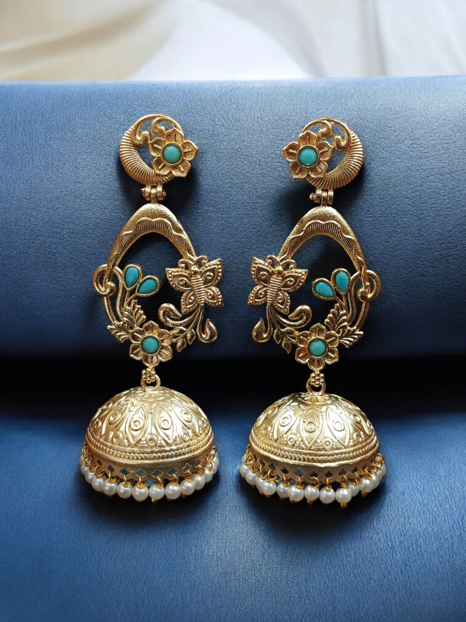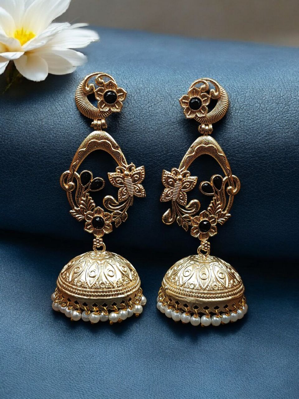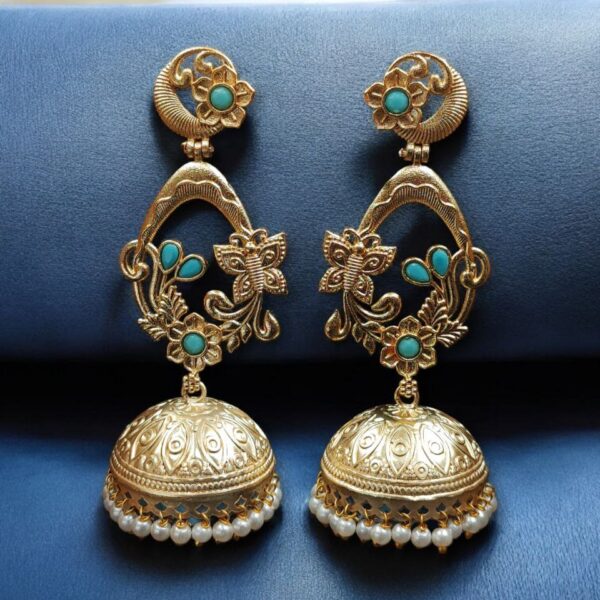 Enhance your ethnic elegance with these Traditional Butterfly Jhumka Earrings, beautifully crafted in affordable gold plated jewellery design. Perfectly combining classic Indian artistry with modern charm, these earrings are designed for women who love graceful, statement-making accessories without compromising on budget.