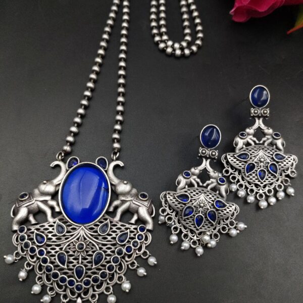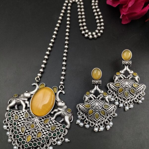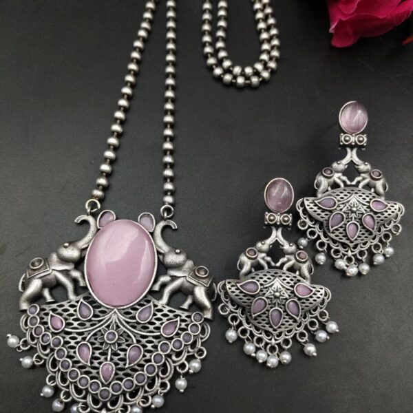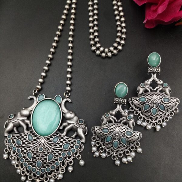 This necklace set is also a thoughtful gifting option for birthdays, festivals, weddings, or special occasions. Its symbolic elephant design combined with elegant Monalisa stone and pearl work makes it a meaningful and stylish gift for loved ones. Easy to maintain and timeless in appeal, it is a beautiful addition to any ethnic jewelry collection.