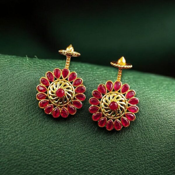 Designed for women who appreciate traditional jewelry with a designer touch, these earrings combine heritage-inspired aesthetics with modern finishing. The rich gold tone and sparkling stone work make them versatile enough to complement both heavy ethnic attire and simple traditional outfits.