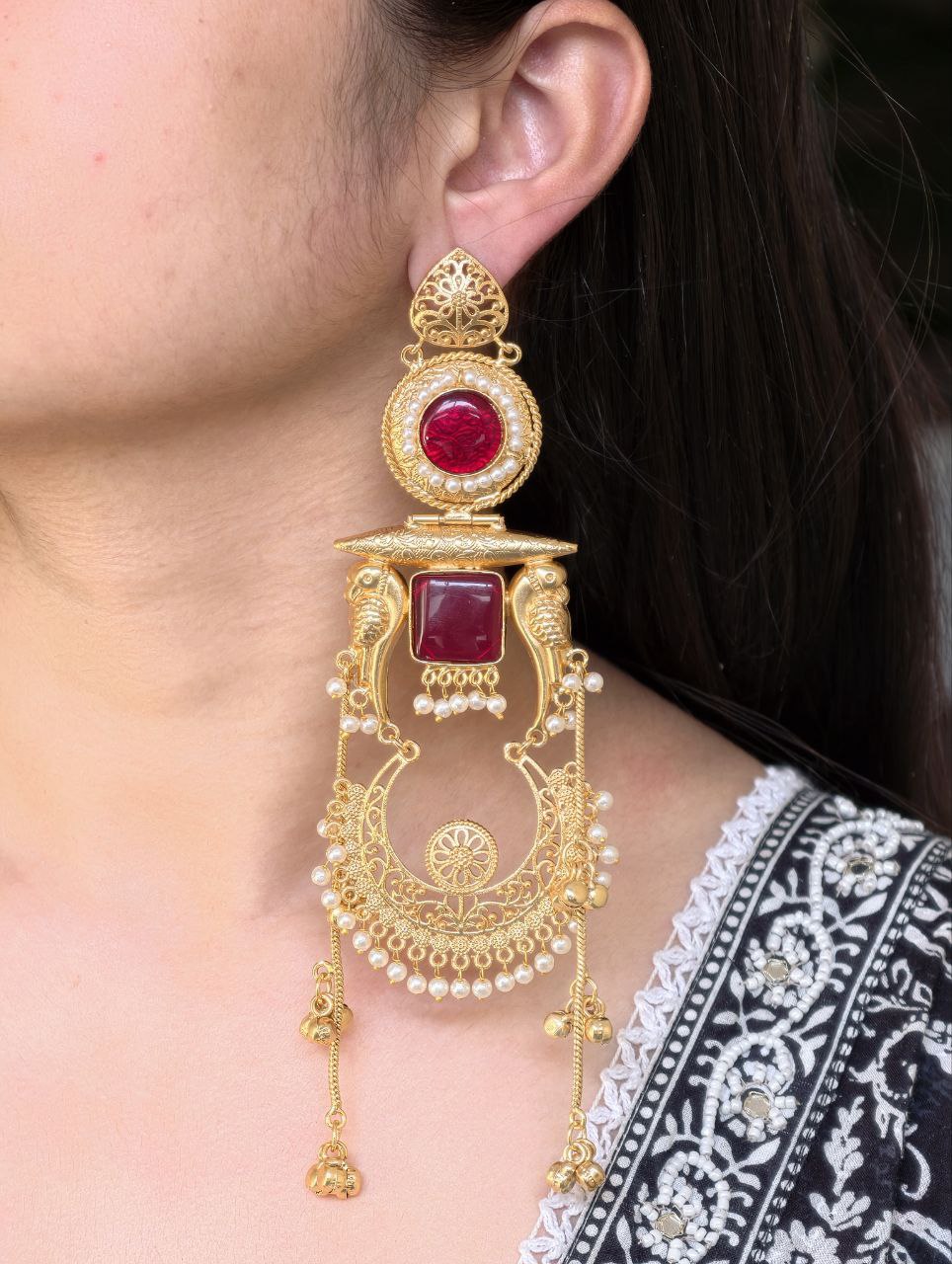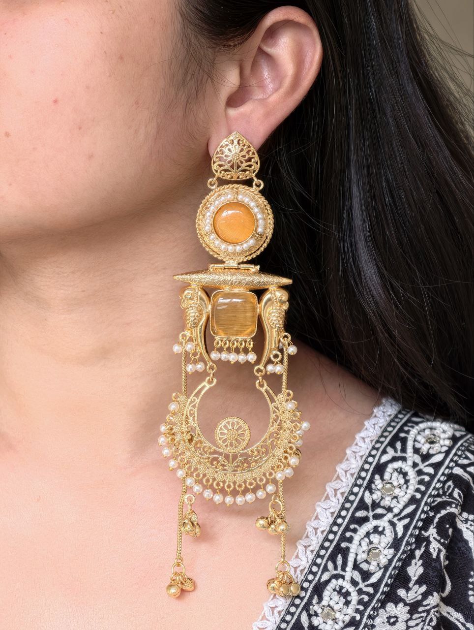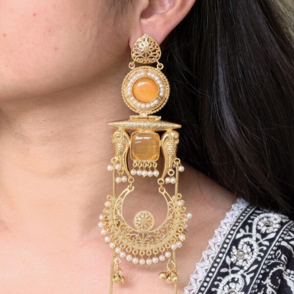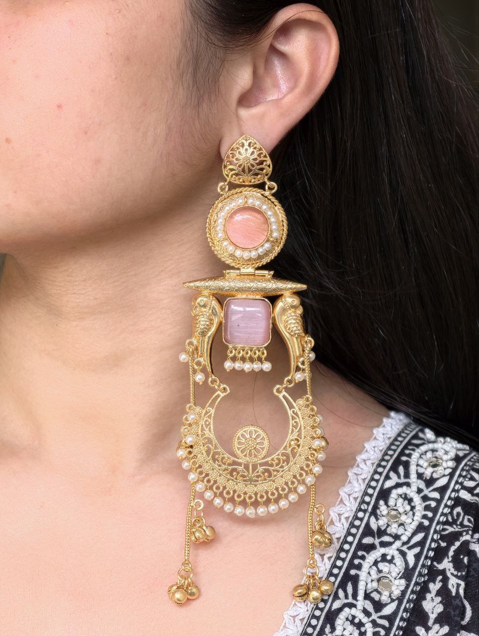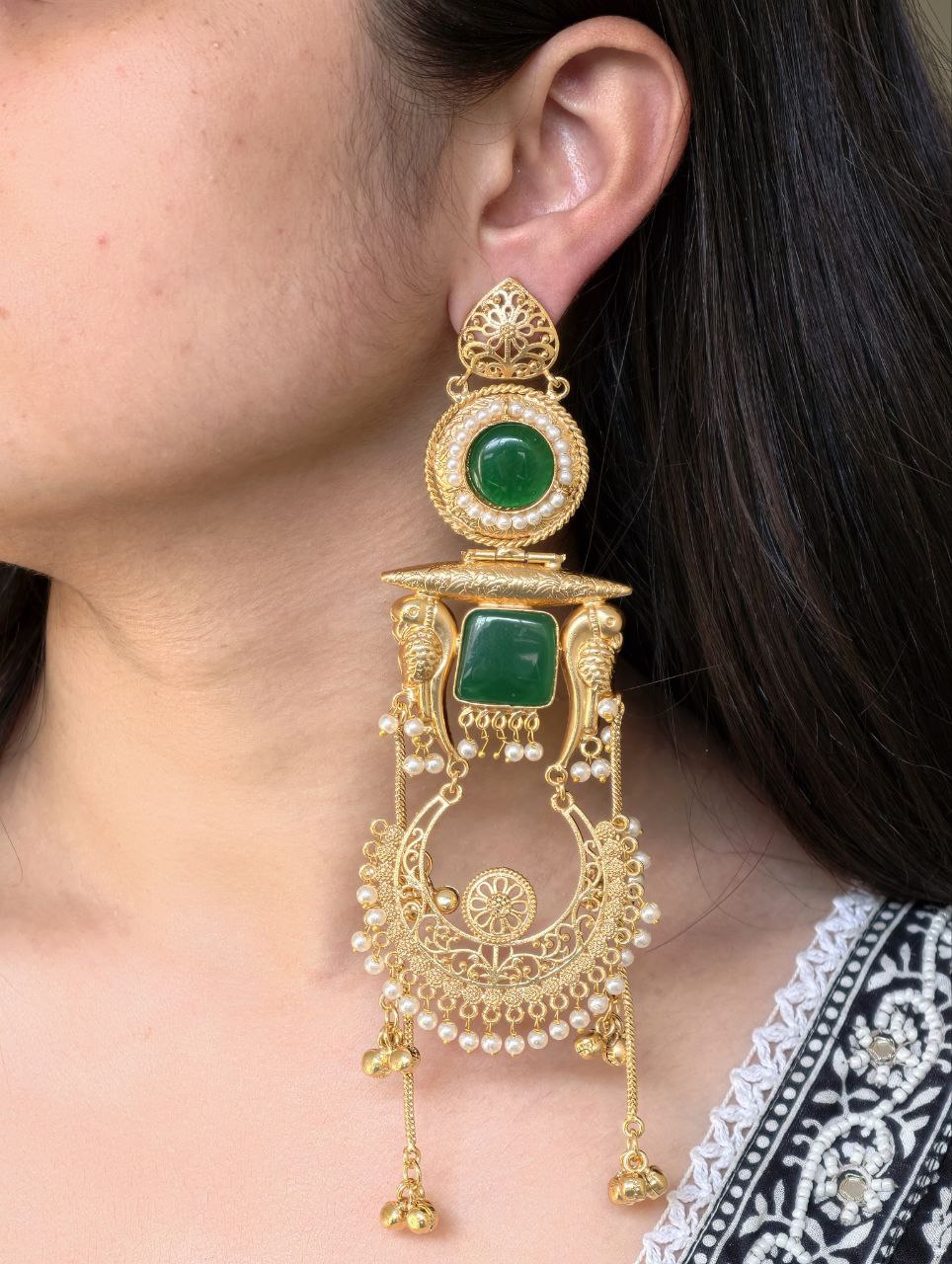 Bring home the charm of traditional artistry with the Traditional Gold Plated Parrot Design Kashmiri Earrings, beautifully enhanced with elegant pearl detailing. Inspired by the rich heritage of Kashmiri jewelry, these earrings reflect vibrant cultural motifs blended with graceful craftsmanship, making them a perfect choice for women who love ethnic elegance.