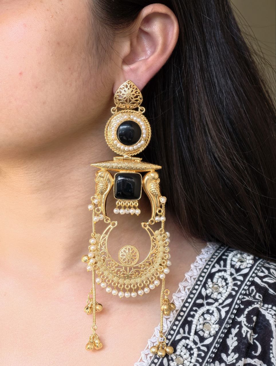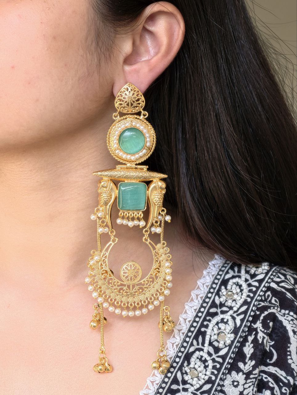 Add the Traditional Gold Plated Parrot Design Kashmiri Earrings to your jewelry collection and experience the beauty of cultural craftsmanship with timeless appeal. With their artistic parrot motif, graceful pearl detailing, and traditional dangler form, these earrings are a must-have for every ethnic jewelry lover.