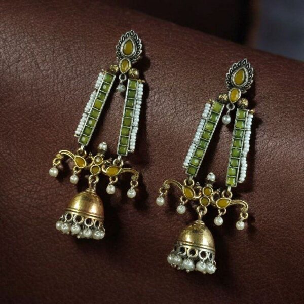 Perfect as a thoughtful gift for loved ones, these traditional two-tone jhumki earrings embody the richness of Indian culture while offering a stylish, contemporary touch. Pair them with sarees, lehengas, salwar suits, or even Indo-western outfits to create an unforgettable style statement.
