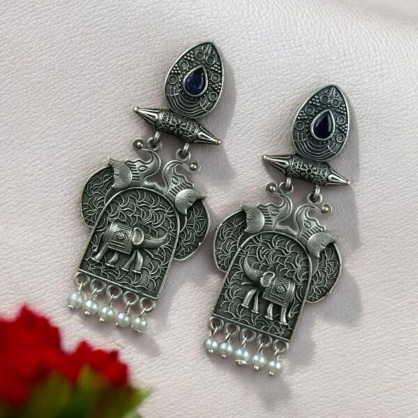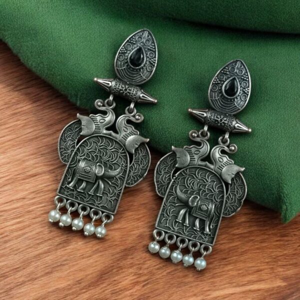 Celebrate tradition in style with the Traditional Oxidized Elephant Earrings?a stunning piece that captures the spirit of cultural elegance and modern-day fashion.