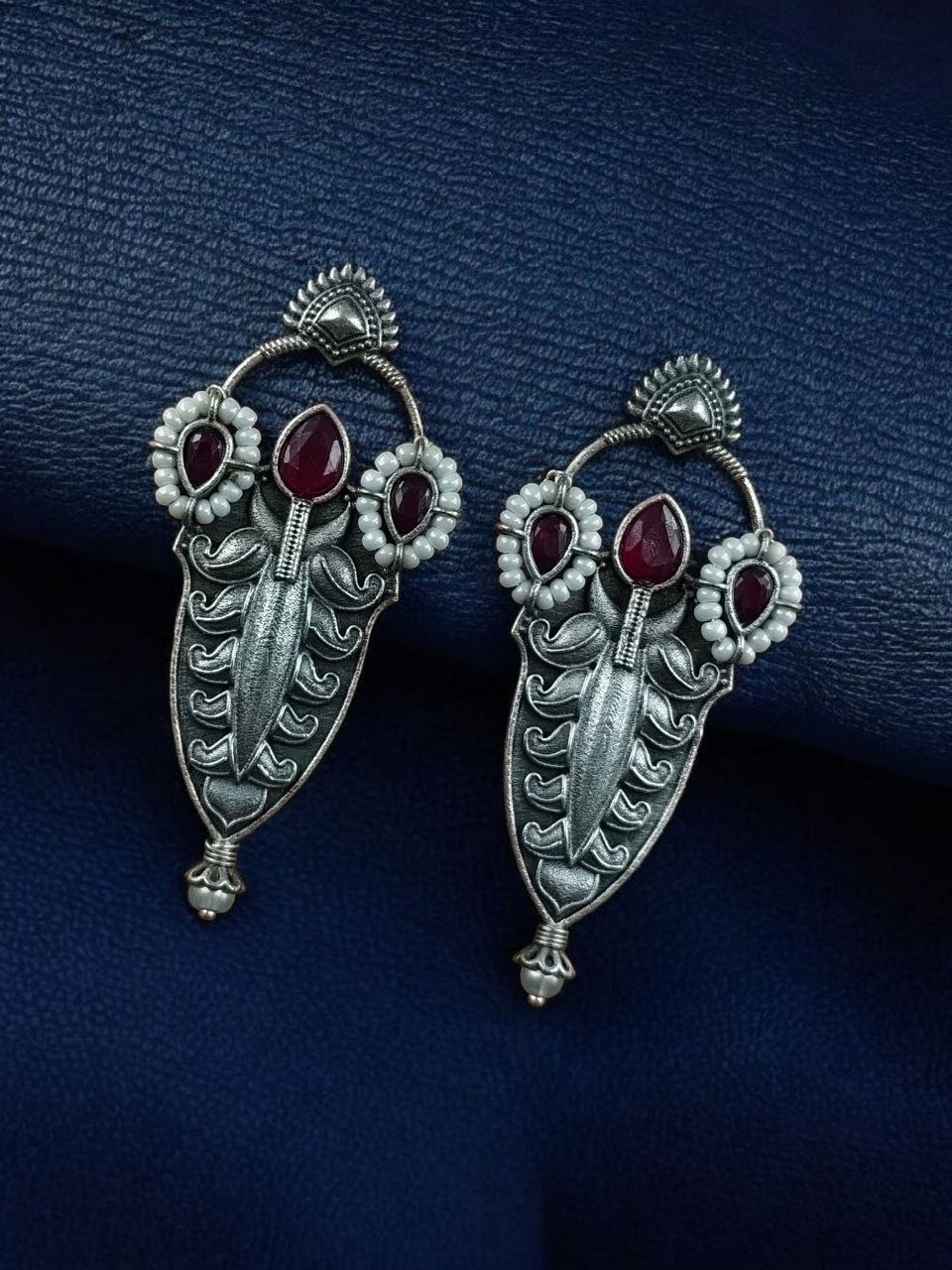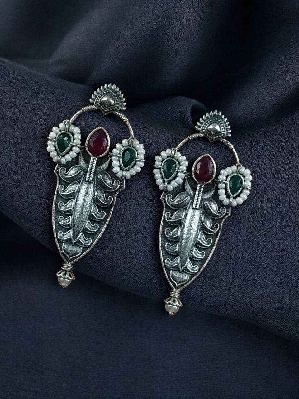 Enhance your jewelry collection with these Traditional Oxidized Silver Plated Stud Earrings, designed to bring timeless elegance and ethnic charm to your everyday and festive looks. These Stud Earrings are a perfect blend of silver plating with delicate oxidized finish, giving them a vintage yet contemporary appeal. Meticulously crafted, each stud features intricate pearl and stone work, making them a standout accessory for women of all ages.
