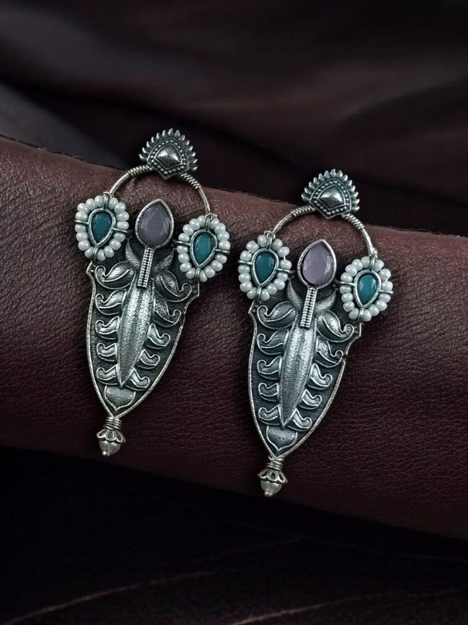 Crafted with precision, these Stud Earrings exemplify traditional artistry combined with modern aesthetics. The oxidized silver plating ensures durability and resistance to tarnish, maintaining their lustrous look over time. Whether you are buying them for daily wear or special occasions, these stud earrings are an ideal choice for those who appreciate ethnic jewelry with contemporary elegance.