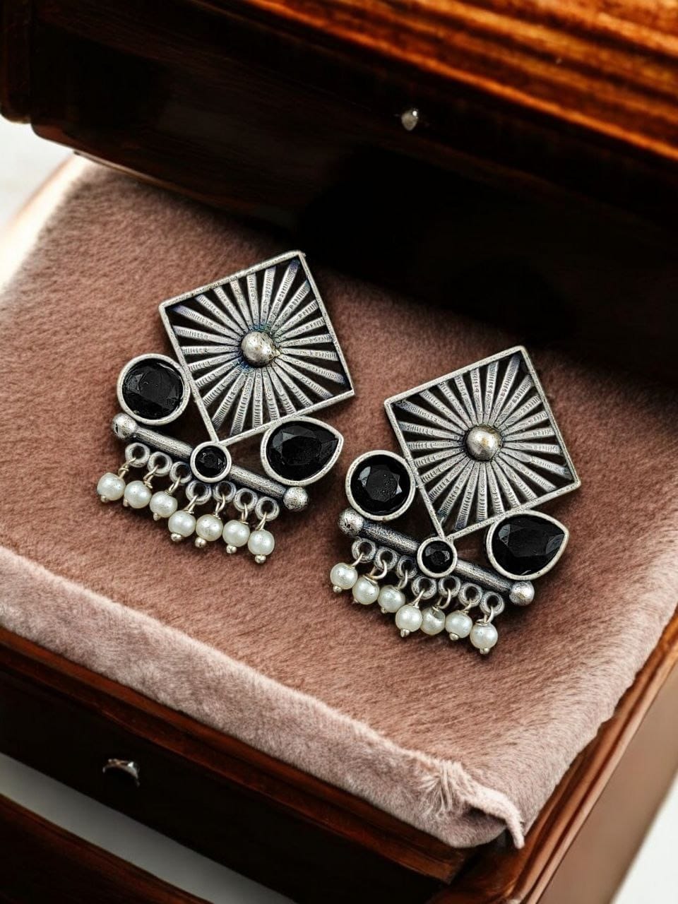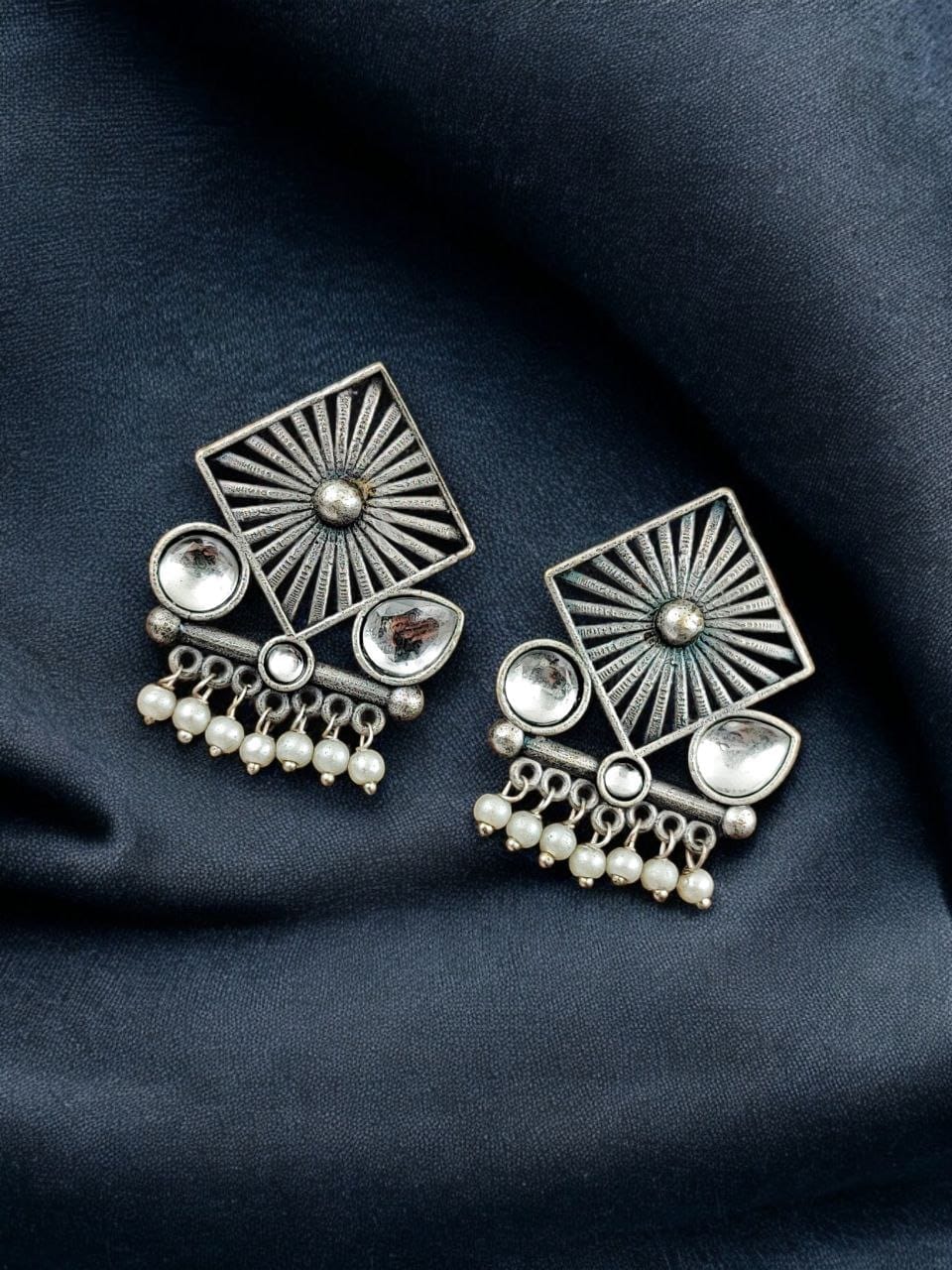 Enhance your style effortlessly with our Traditional Silver Replica Stud Earrings, a perfect blend of elegance and tradition. Designed for women who appreciate timeless jewelry, these lightweight oxidised earrings are ideal for any occasion, whether it?s a festive gathering, a casual outing, or everyday wear.
