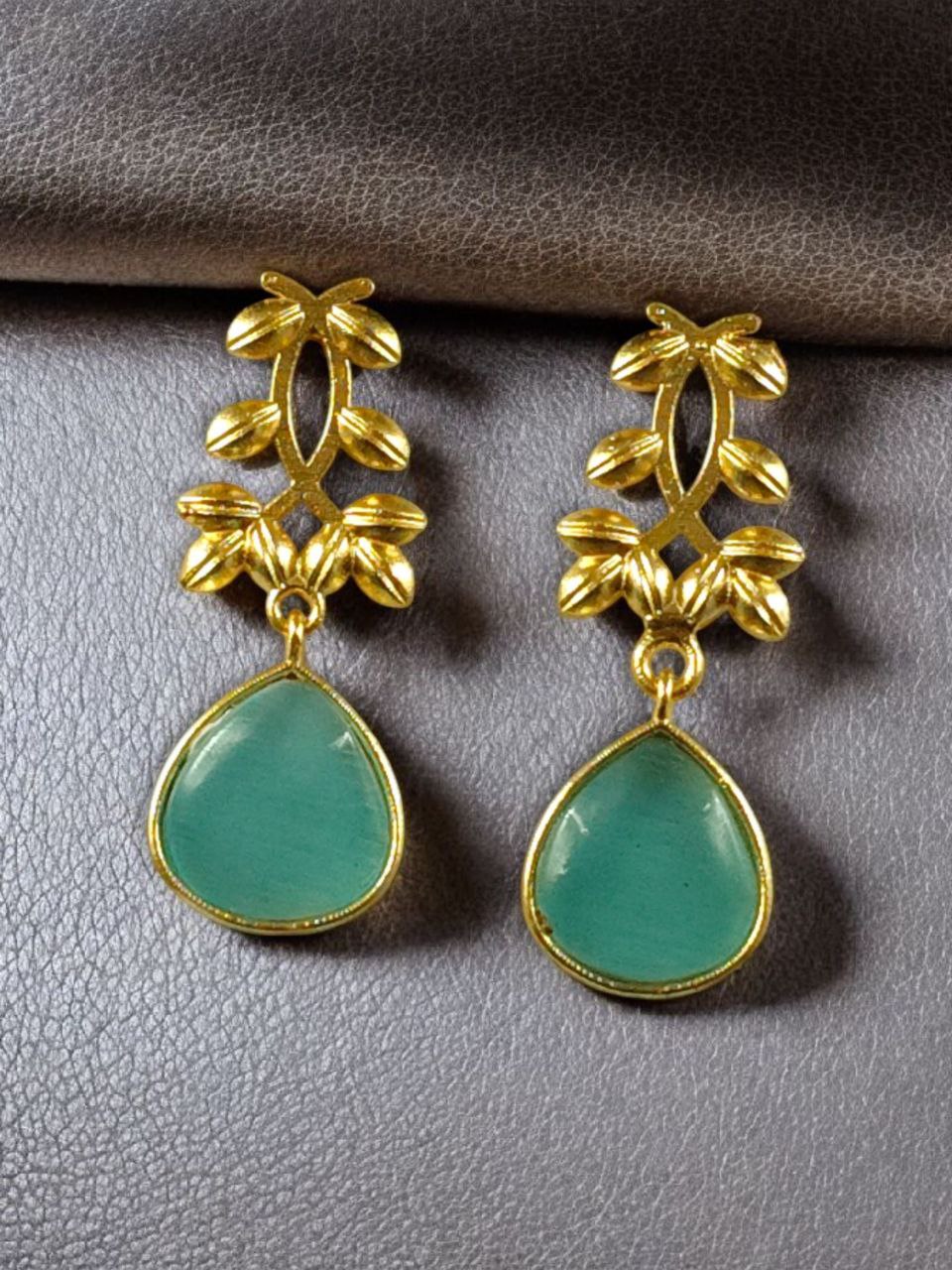 Add these Trendy Gold Plated Monalisa Stone Dangler Earrings to your jewelry collection and enjoy the perfect balance of beauty, tradition, and modern style ? a pair you?ll want to wear again and again.