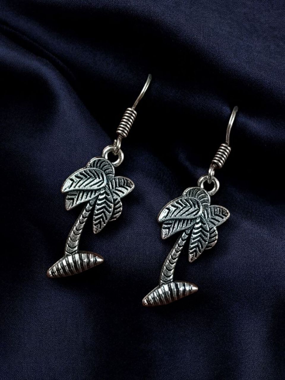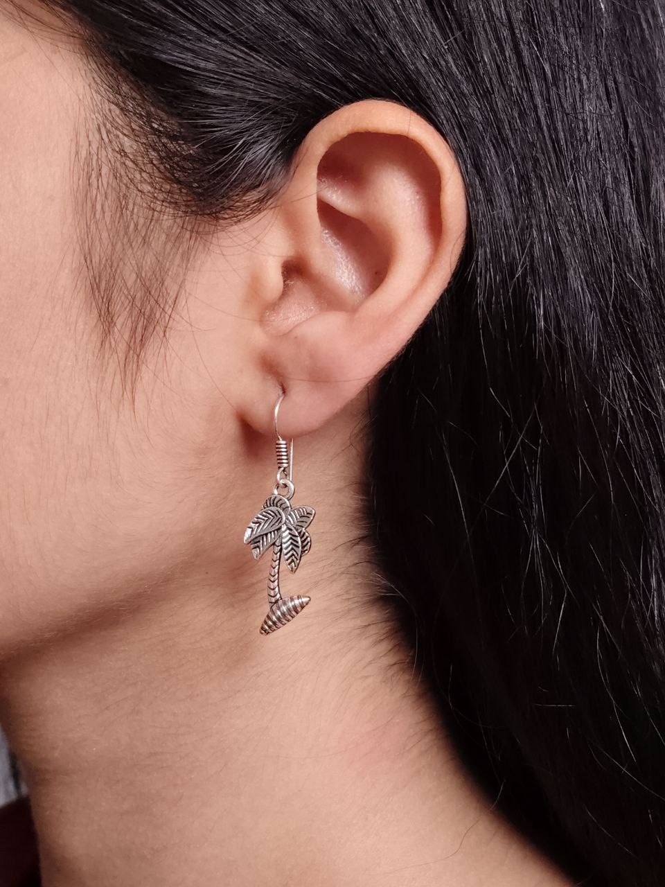 The oxidized silver finish adds a rustic yet modern vibe, perfectly blending with both ethnic and western outfits. Whether you?re heading to the office, a casual outing, or a small family gathering, these German silver dangler earrings are the perfect everyday jewelry choice. The intricate craftsmanship highlights the detailing of the tree pattern, making them stand out as a statement accessory.