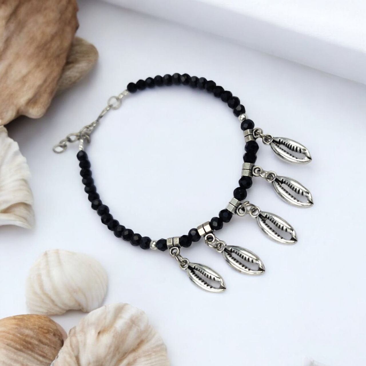 At the heart of each bracelet hangs an oxidised charm, crafted from premium materials to achieve a vintage look and feel. The oxidised finish adds depth and character to the charm, highlighting intricate designs and details that reflect artisanal craftsmanship. These hanging charms Black Beads Bracelets are inspired by traditional motifs, offering a nod to cultural heritage while maintaining a modern edge.