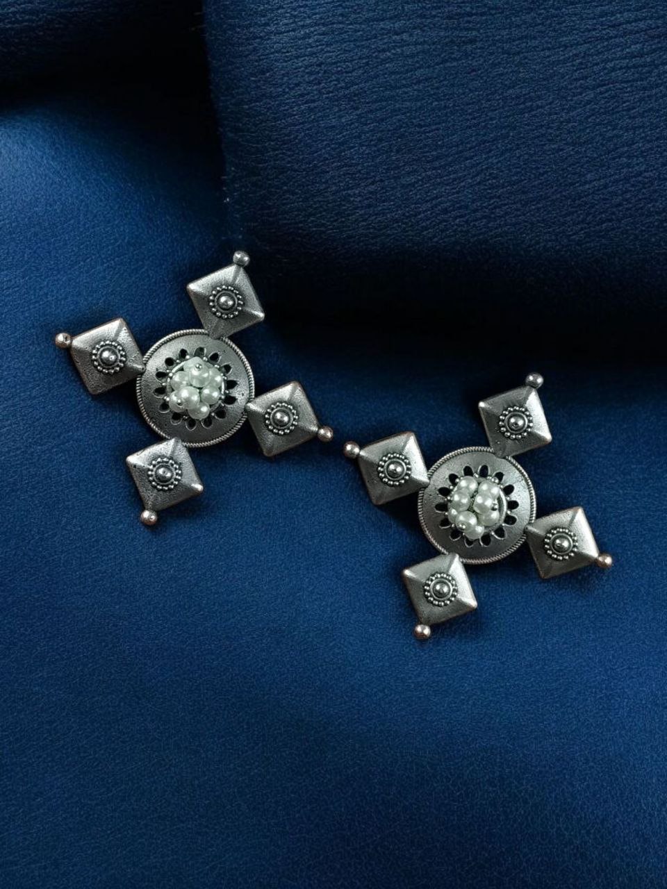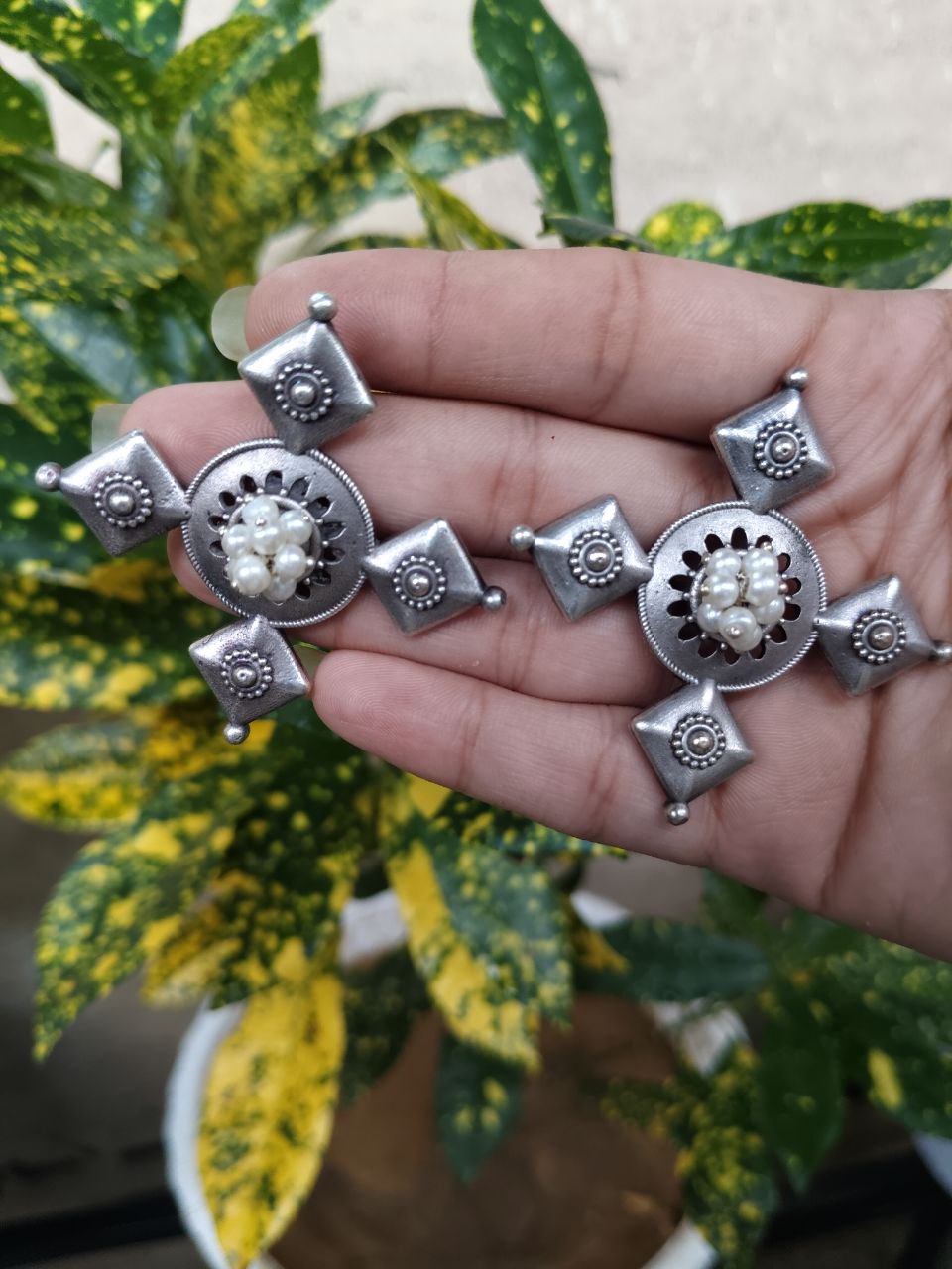 Each pair is carefully designed to reflect a balance of artistry, tradition, and trend, making it not just jewelry but a piece of art that enhances your style and personality. Elevate your everyday look or festive outfit effortlessly with these Boho Inspired Silver Plated Earrings with Pearl Work.