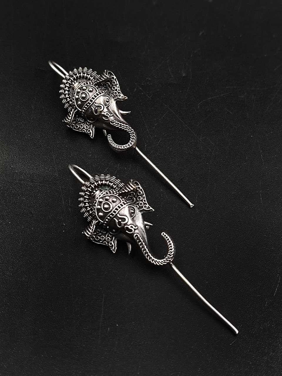 Designed with intricate detailing, the Ganesha motif is carefully carved to highlight traditional artistry and devotion. The oxidized silver replica finish enhances the antique look, giving the earcuff a timeless and ethnic charm. Every curve and pattern reflects fine craftsmanship, making it a meaningful accessory for women and girls who value both style and spirituality.