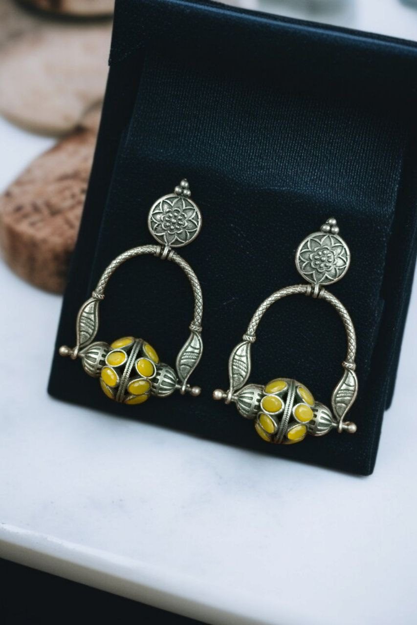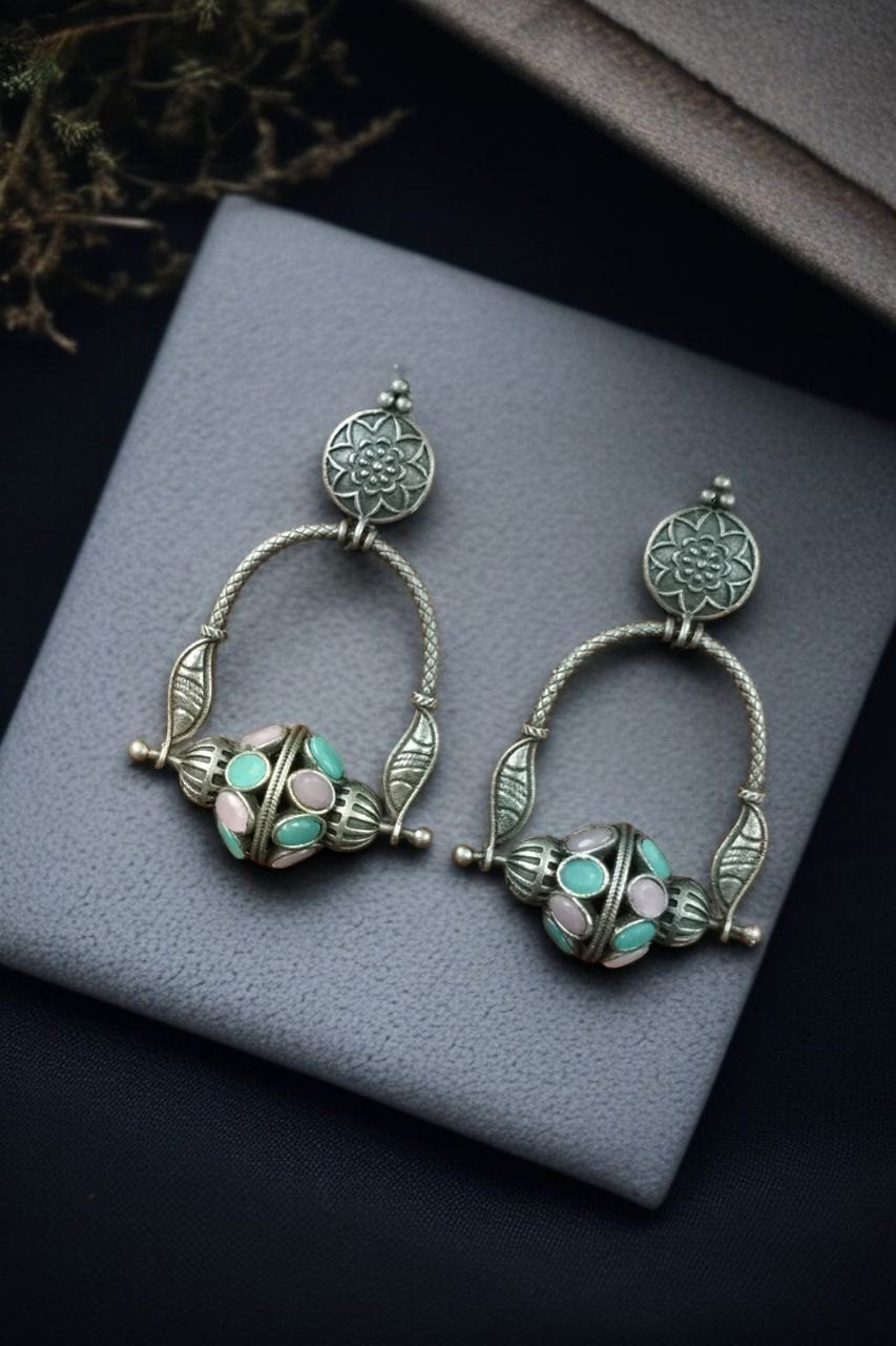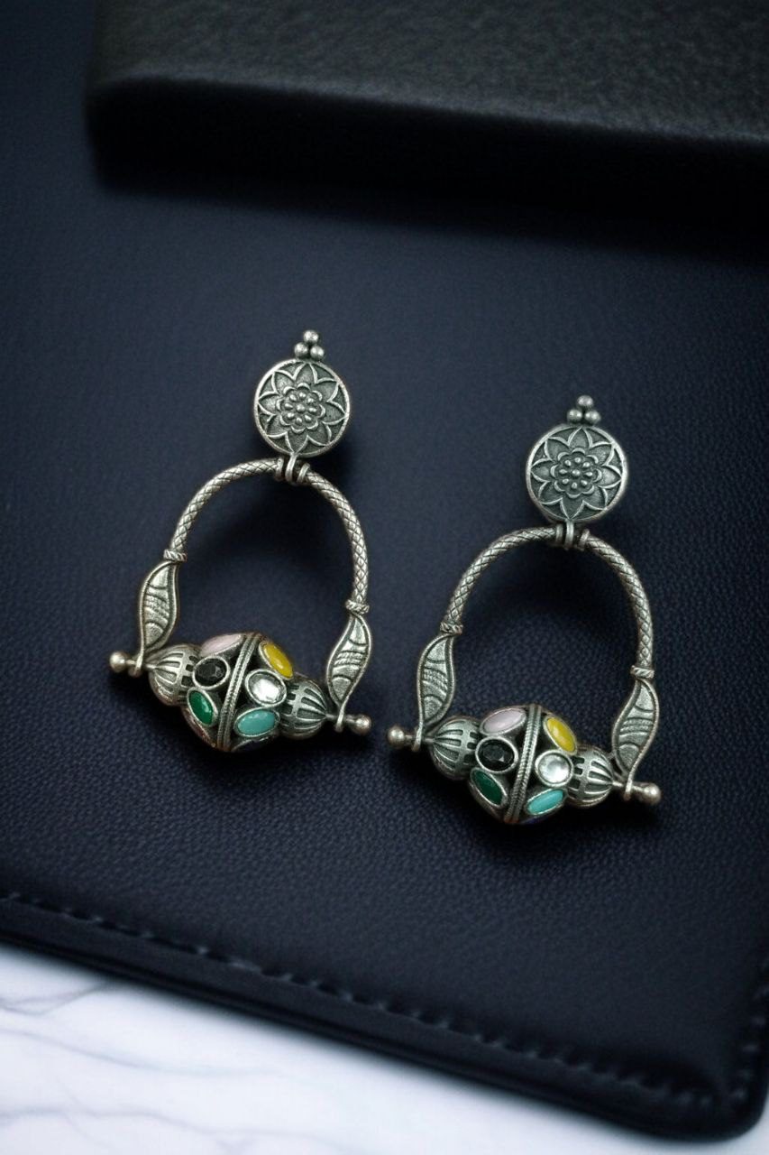 Add a touch of charm and sophistication to your jewelry collection with our Unique Design Oxidised Dangler Earrings with Stone Work ? Silver Plated Ethnic Jewelry. These Oxidised Dangler Earrings are a stunning blend of traditional artistry and modern elegance, designed to complement both ethnic and western outfits with effortless grace.