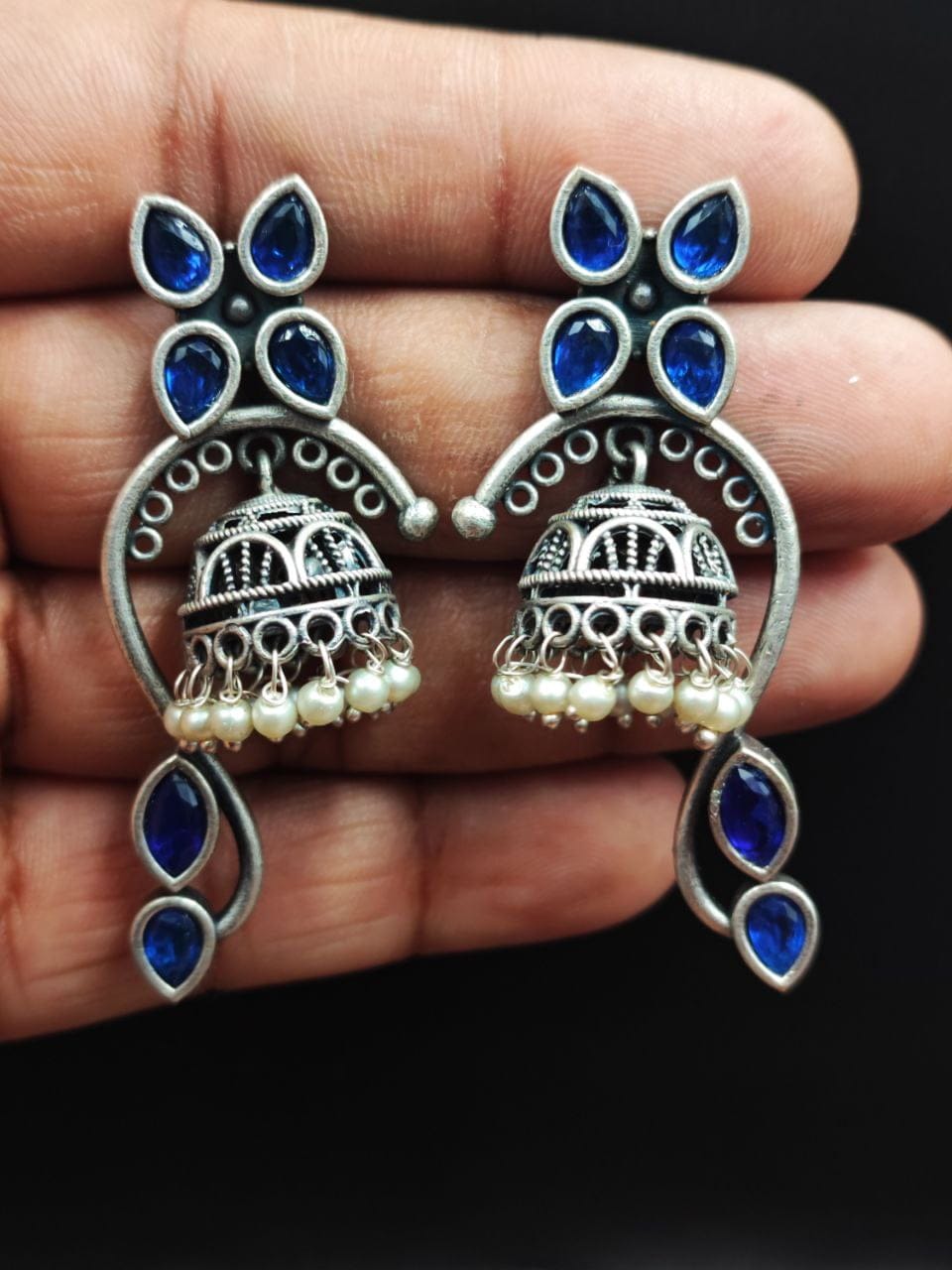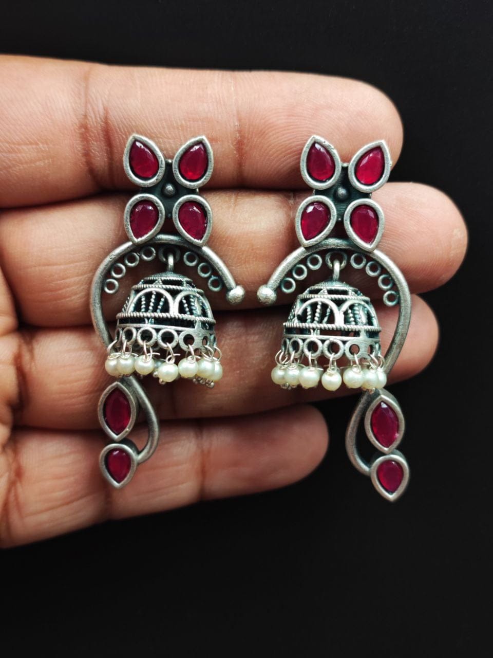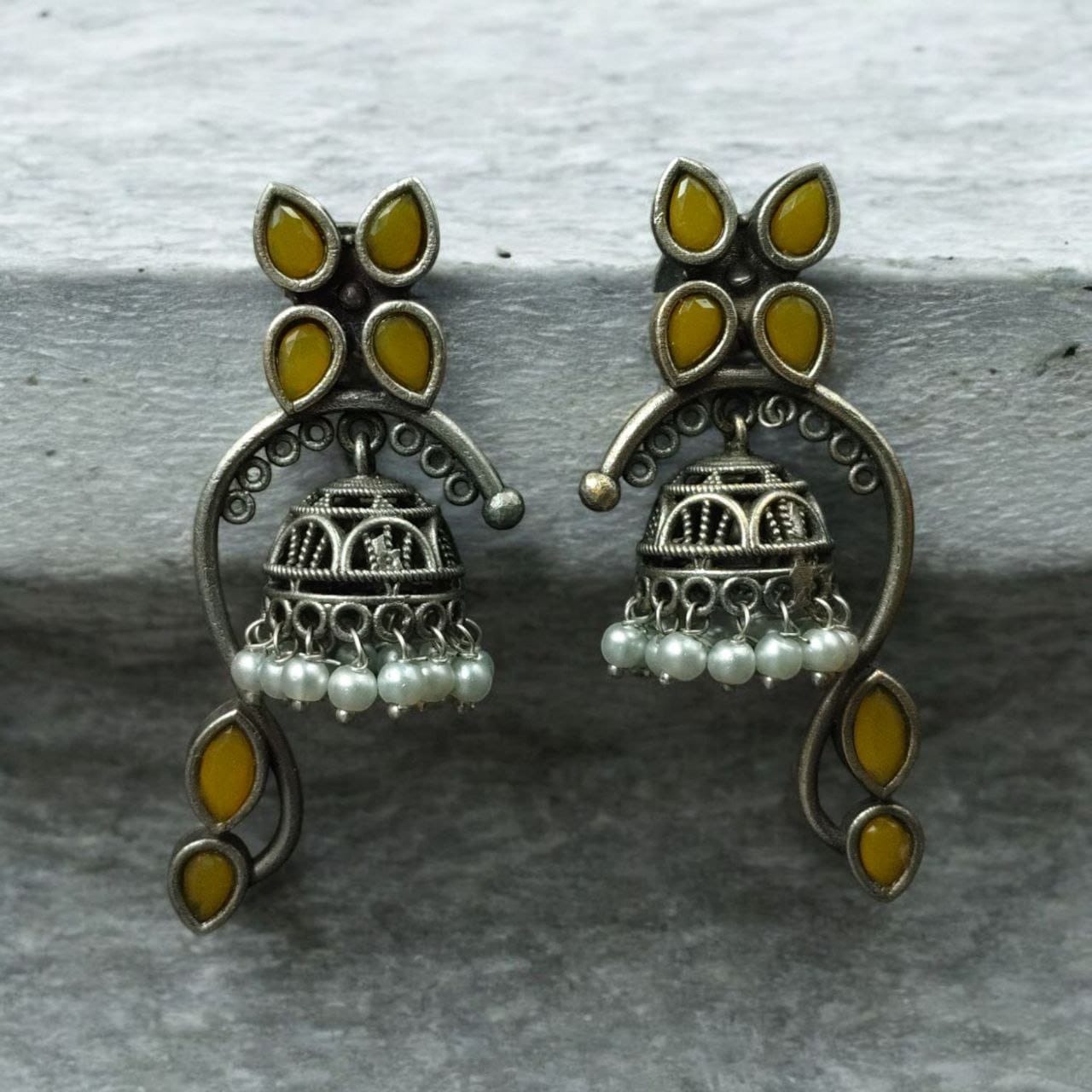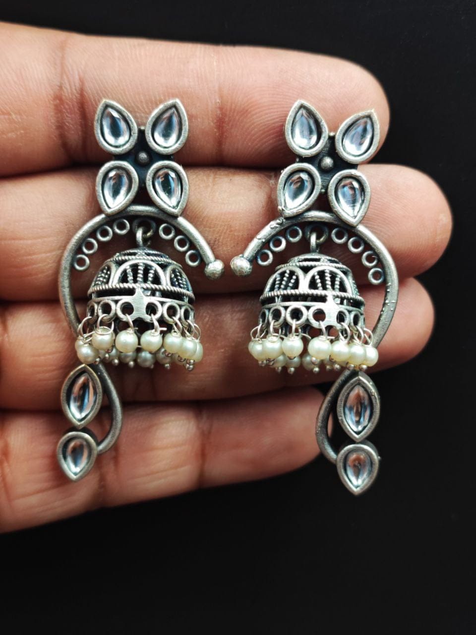 These earrings are a perfect choice for those who appreciate intricate designs, nature-inspired motifs, and the timeless beauty of pearls. With their combination of silver craftsmanship, Jhumka-inspired design, and delicate pearl accents, these earrings make a stunning addition to any jewelry collection.