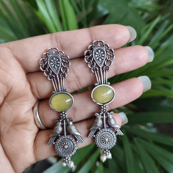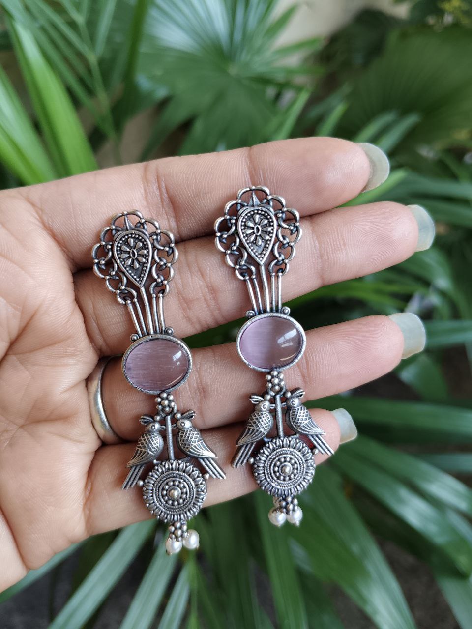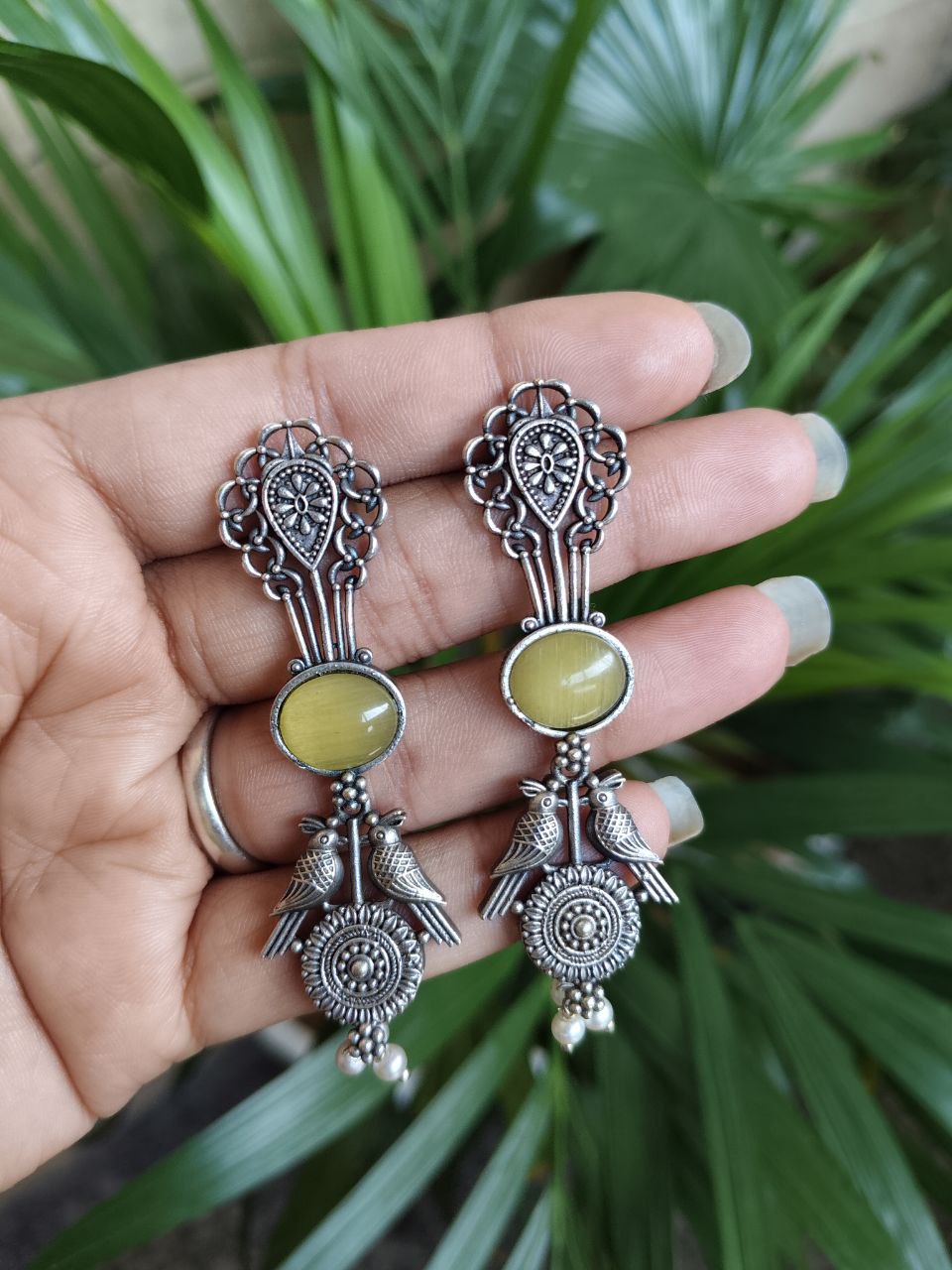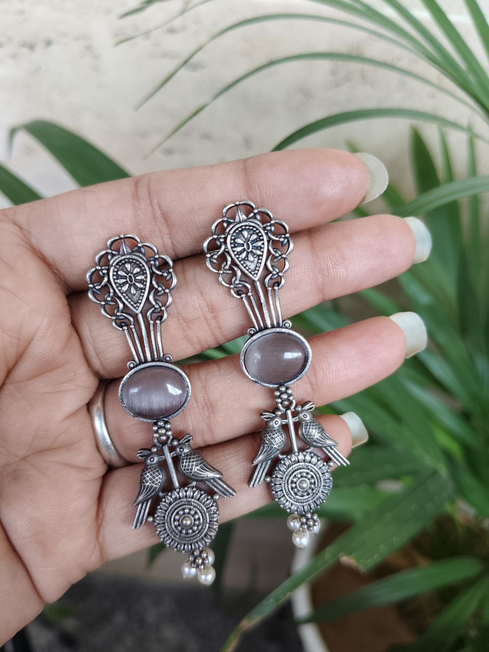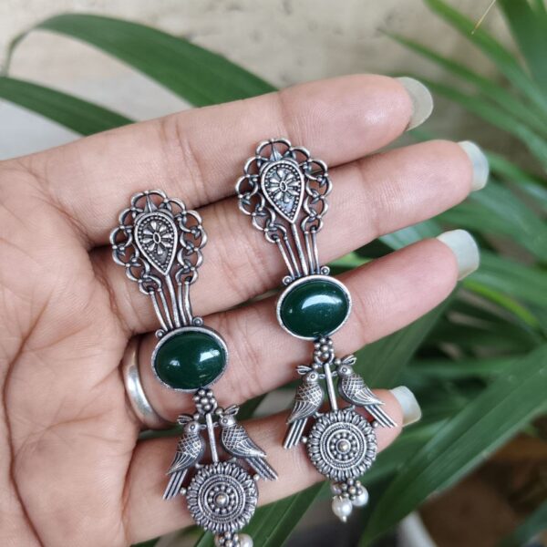 The Vintage Bird Earring is a beautifully crafted jewelry piece inspired by nature and timeless artistic design. Featuring a graceful bird motif, these earrings capture the essence of vintage elegance while adding a unique character to your jewelry collection. The antique-inspired detailing combined with an oxidized finish creates a stunning statement accessory that complements both traditional and contemporary fashion styles. Whether paired with ethnic attire or modern outfits, this earring design adds a distinctive charm to your overall look.