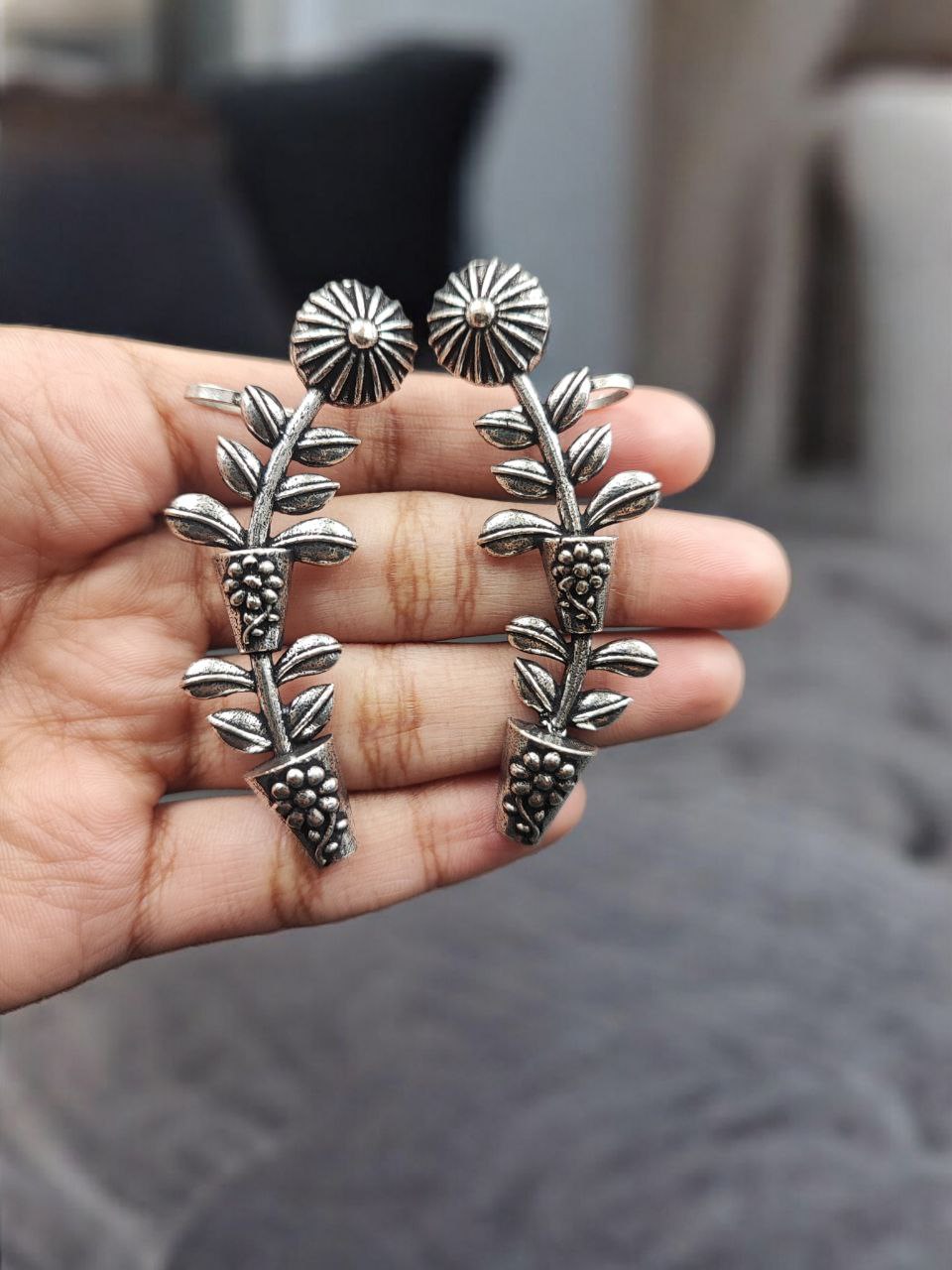 This flower pot oxidized earcuff pairs beautifully with ethnic outfits such as sarees, lehengas, anarkalis, and kurtis, as well as Indo-western and fusion wear. Whether worn for festive occasions, weddings, cultural events, photoshoots, or statement everyday styling, it instantly elevates your look with artistic elegance.
